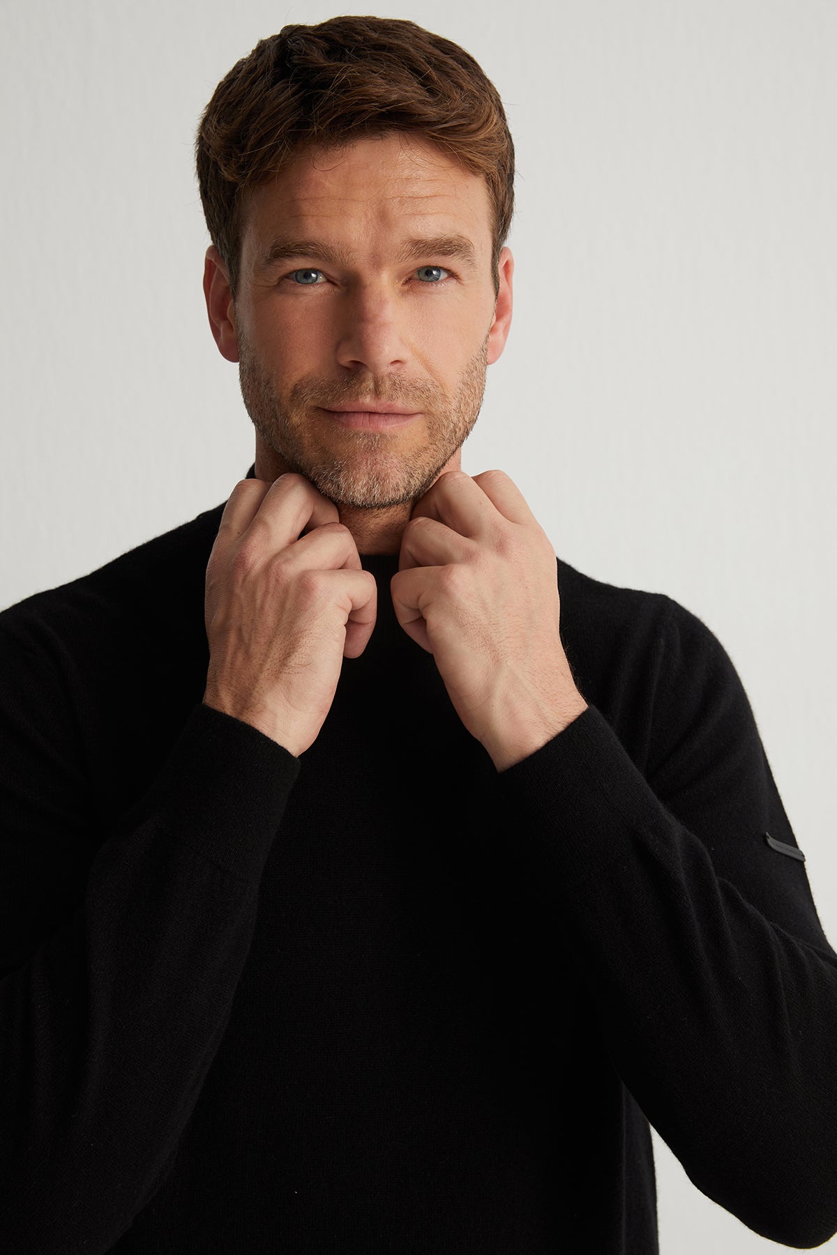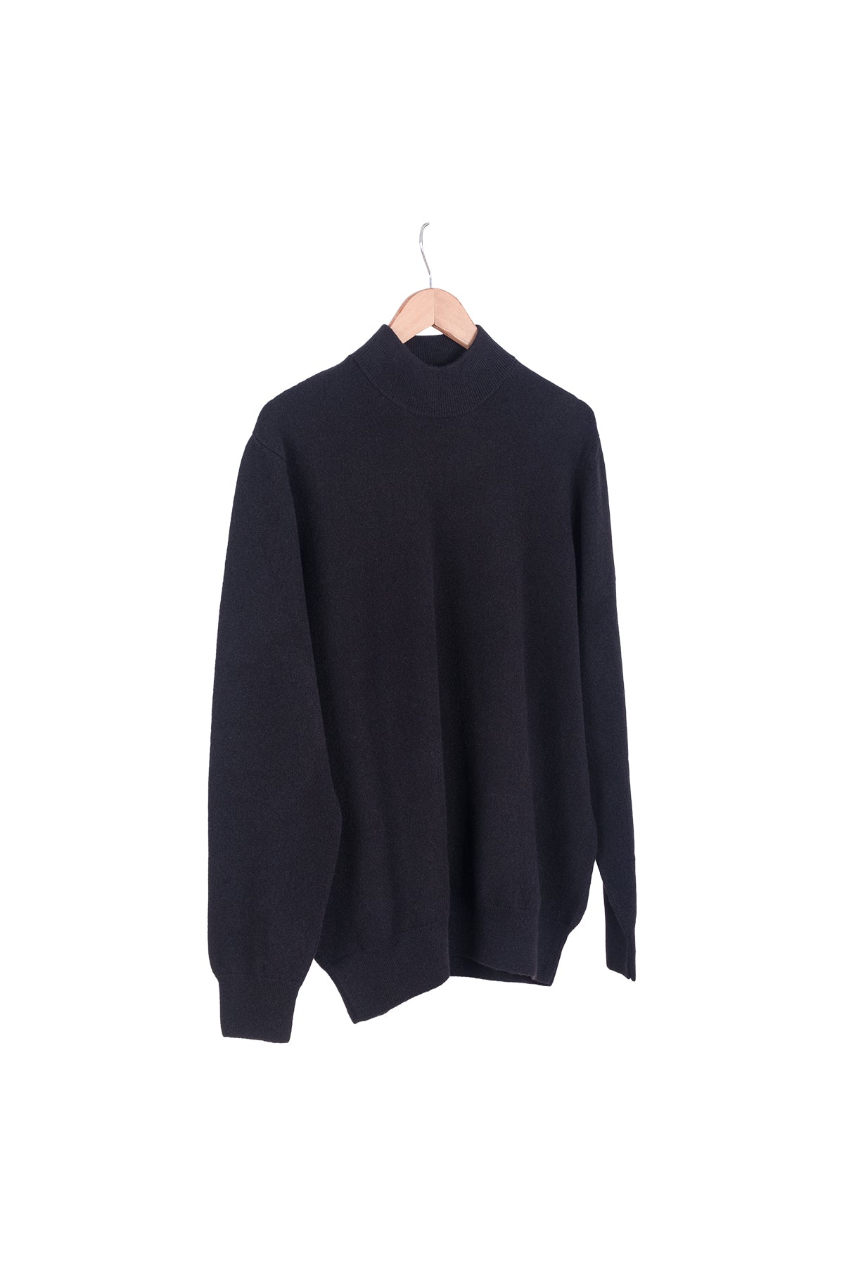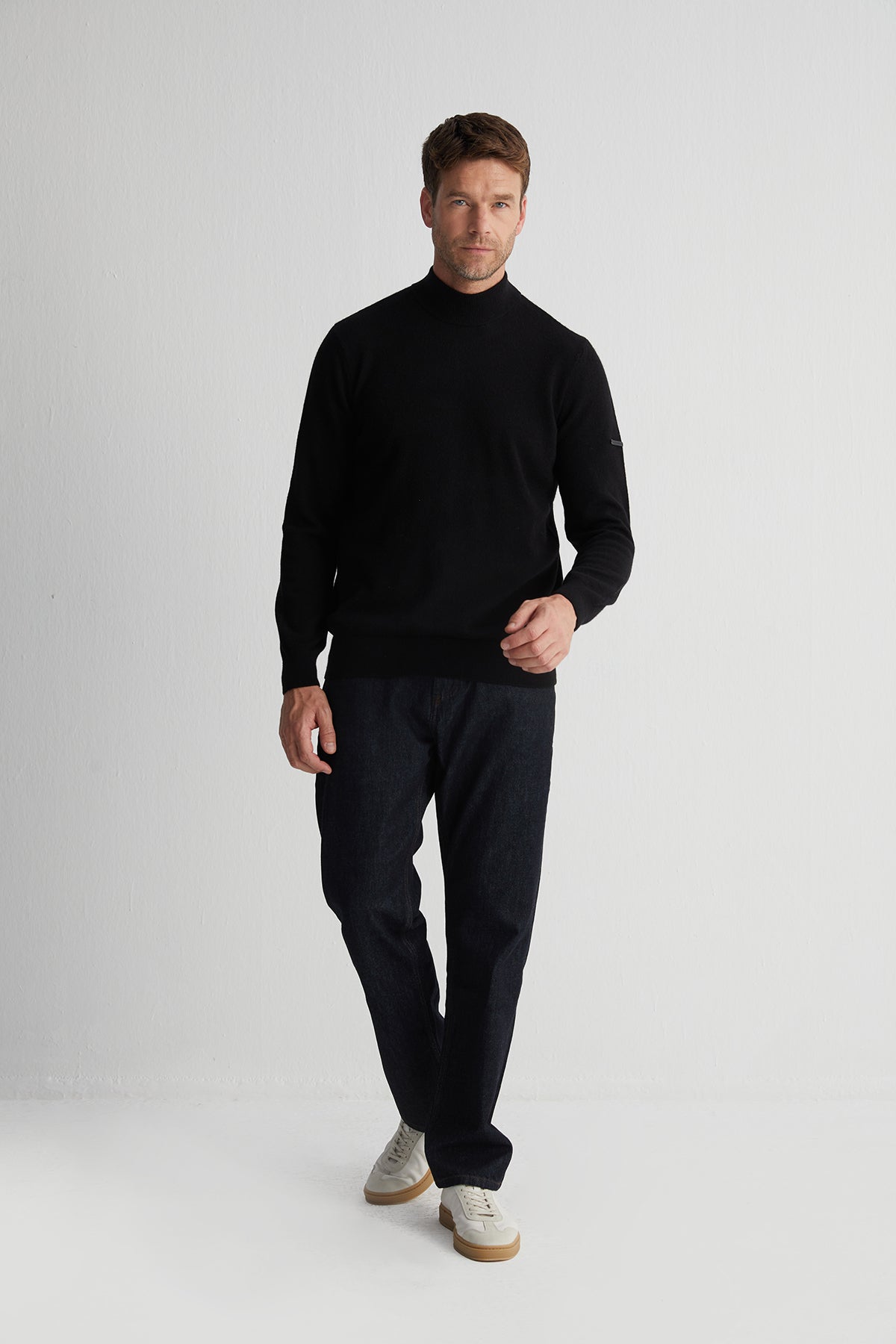 Siyah Saf Kaşmir Yarım Balıkçı Erkek Kazak