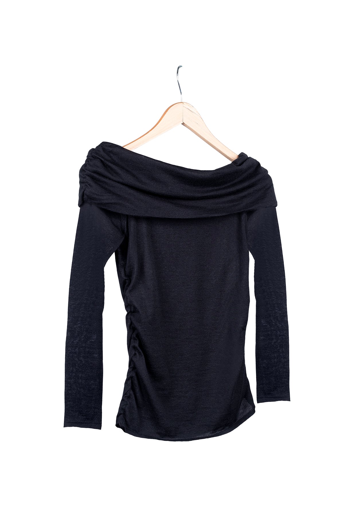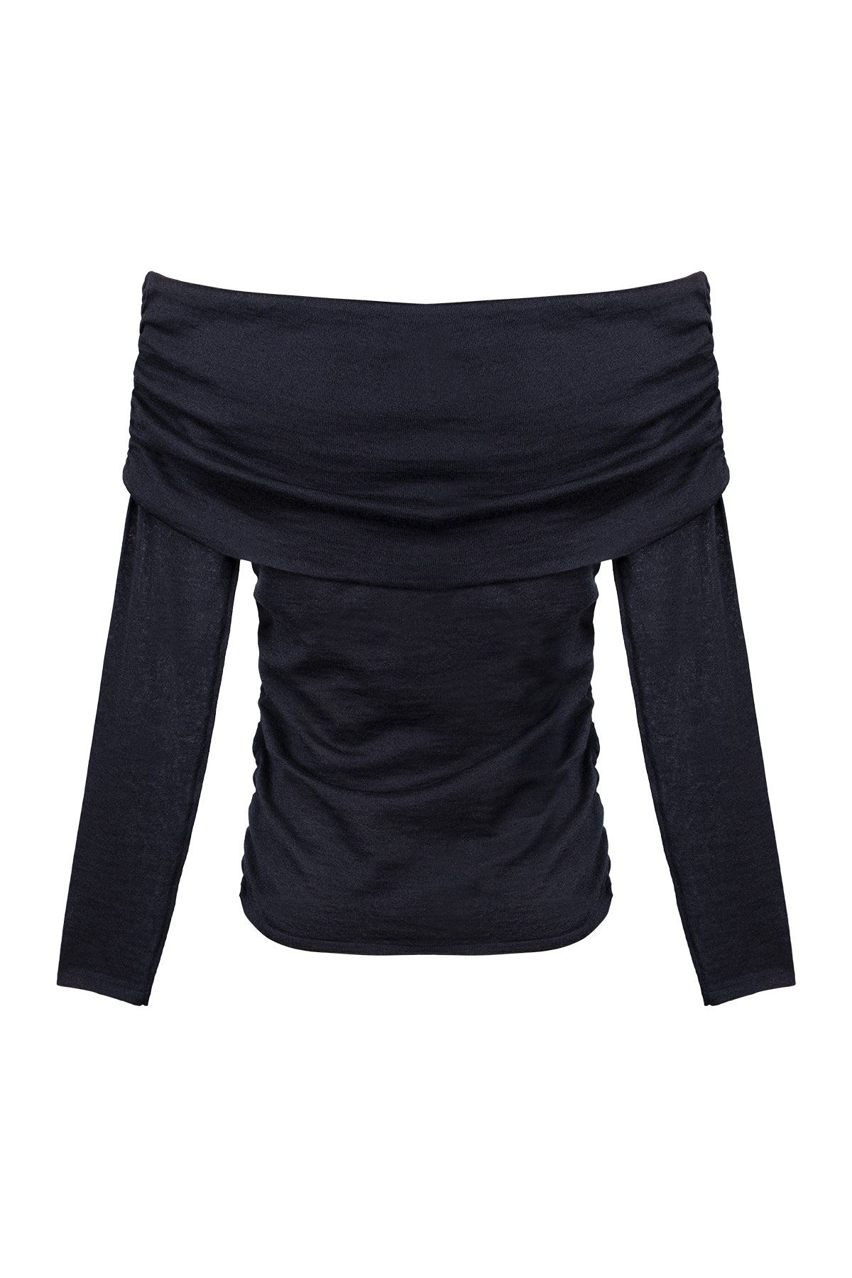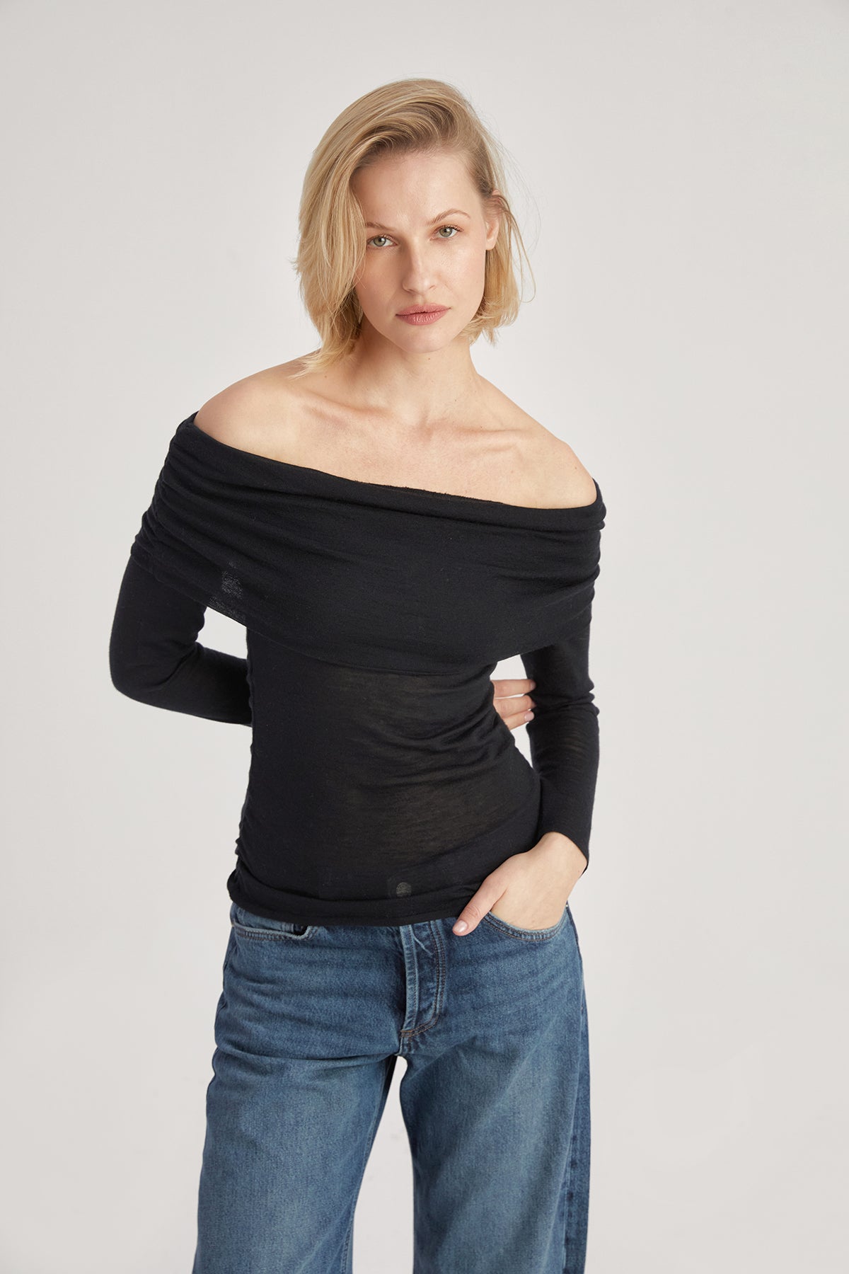 Siyah Ultralight Saf Kaşmir Omuz Dekolteli Triko