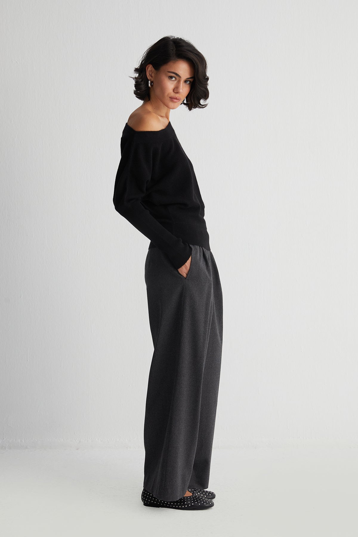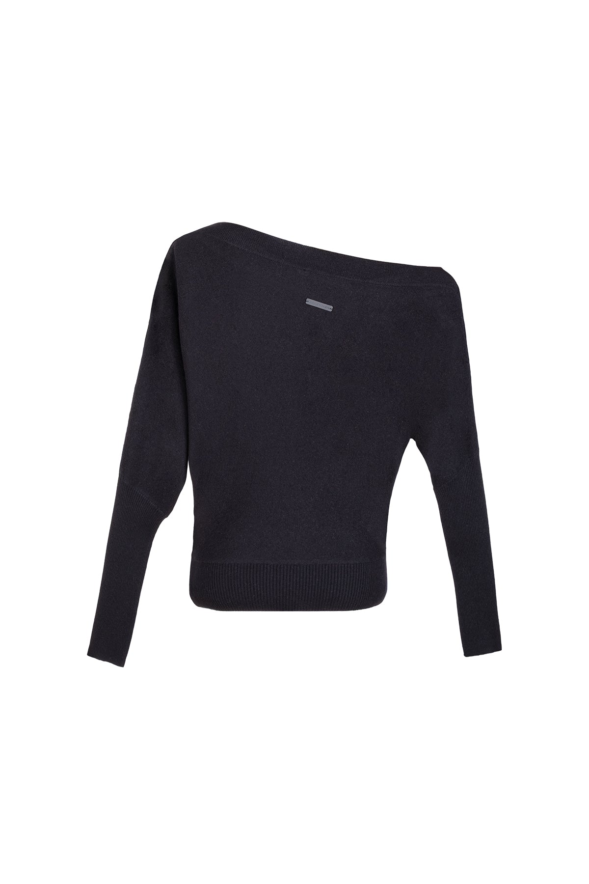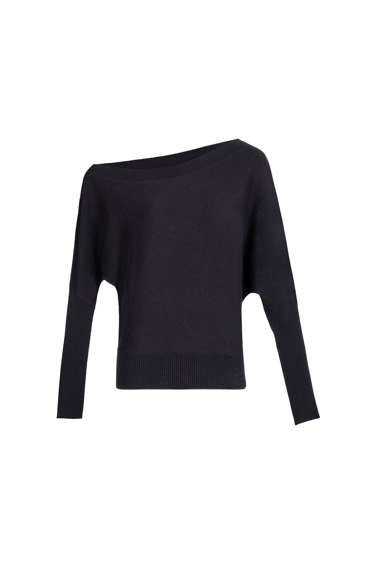 Siyah Vanessa Saf Kaşmir Tek Omuz Dekolte Kazak