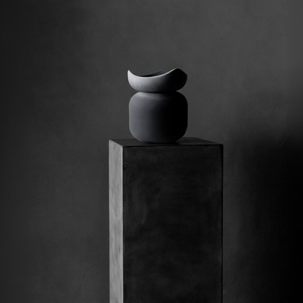 Sakin gücün bir ifadesi olan bu siyah mat vazo, dikkat çekiciliğini parlaktan değil, derinlikten alır. Dalga formundaki ağız detayı, durağan gövdeye zarif bir hareket kazandırırken ışıkla birlikte gölgelerin yumuşak dansını başlatır.