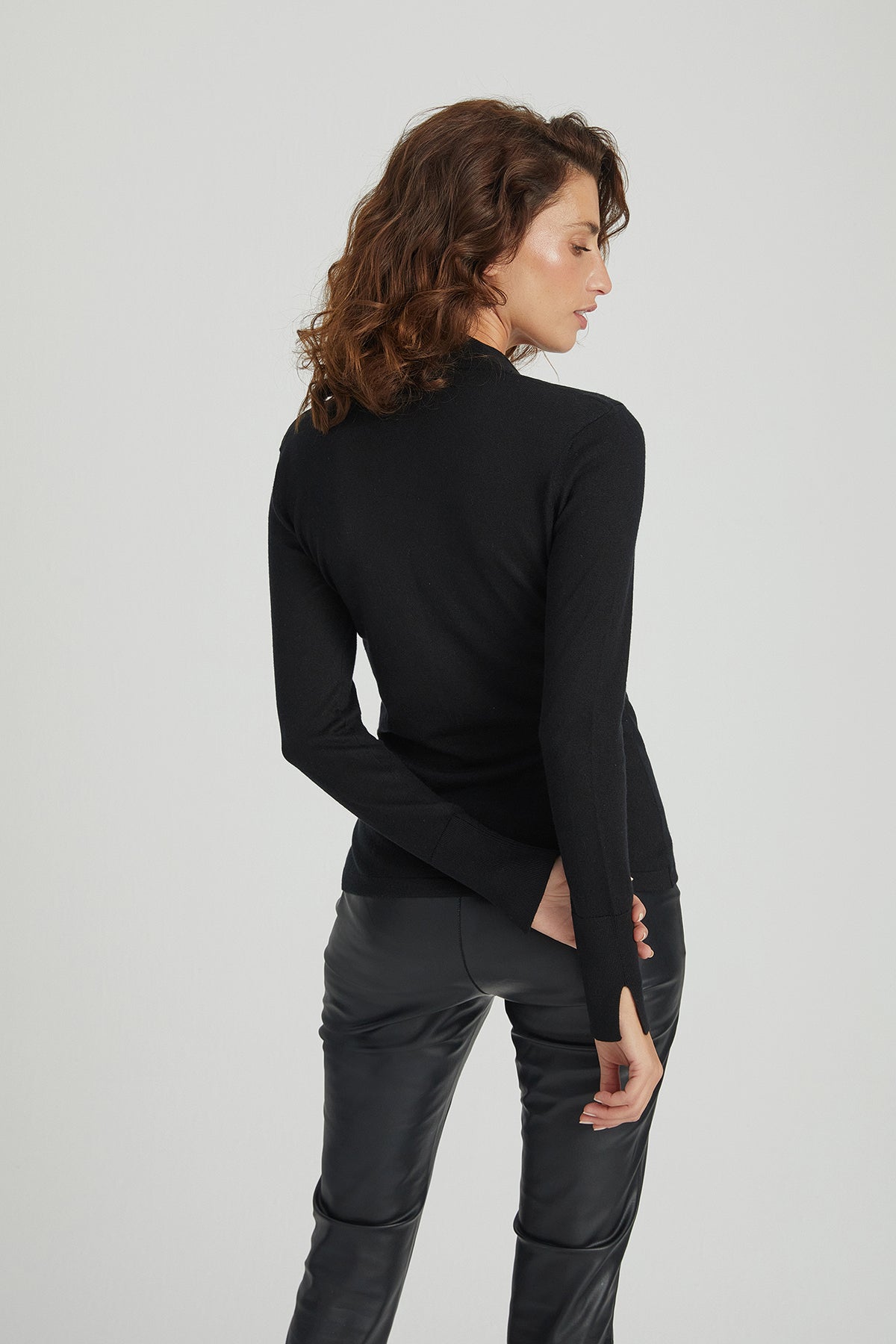Zoe V yaka trikonun siyah tonu, sadeliğin ve gücün birleşimini yansıtırken, ipek ve kaşmir birlikteliği dokunuşta kendini belli eder. Akışkan dokusu ve sade formuyla hem gündelik görünümlerde hem de daha özenli anlarda güvenle tercih edebileceğiniz bir parçadır.