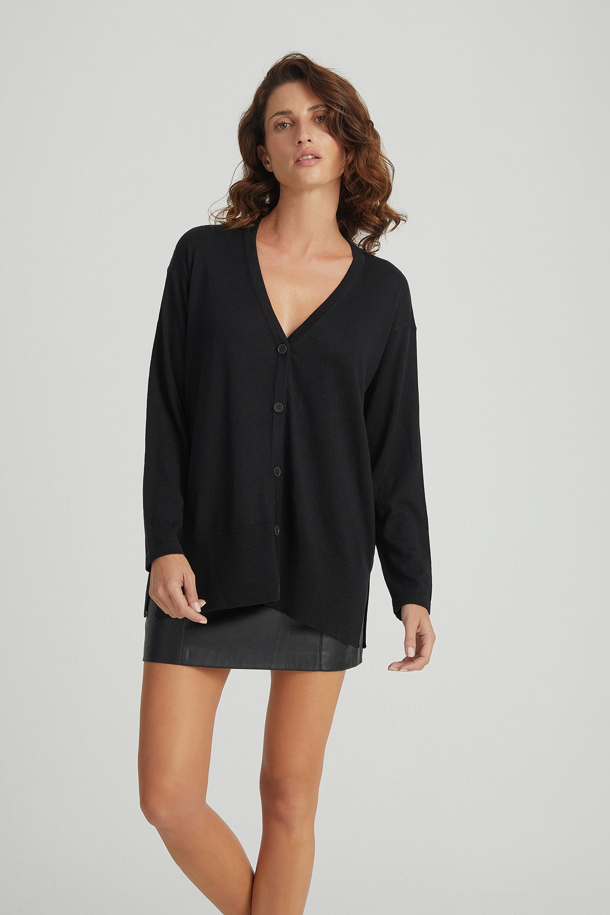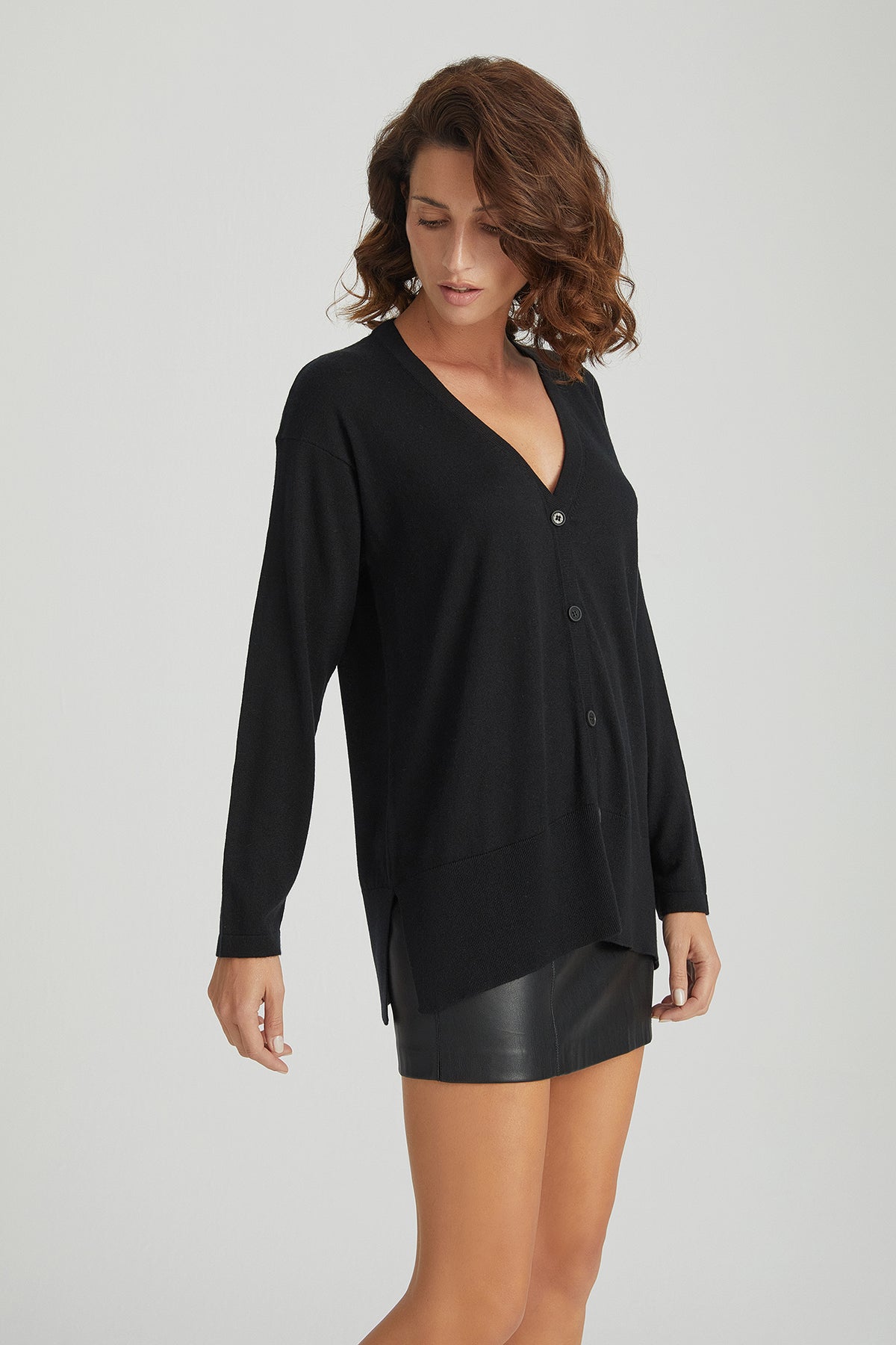 Siyah Zoe İpek Kaşmir V Yaka Hırka
