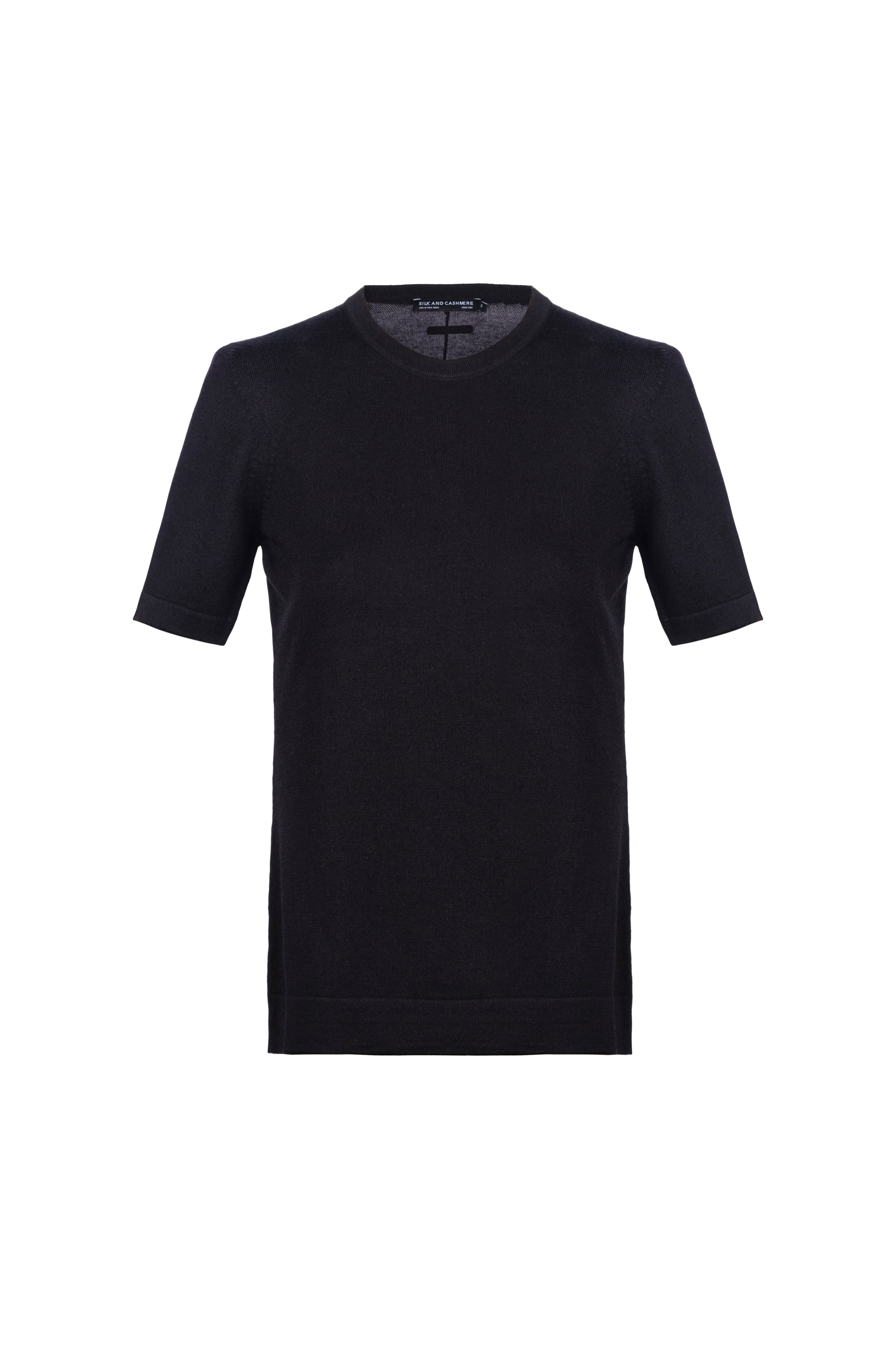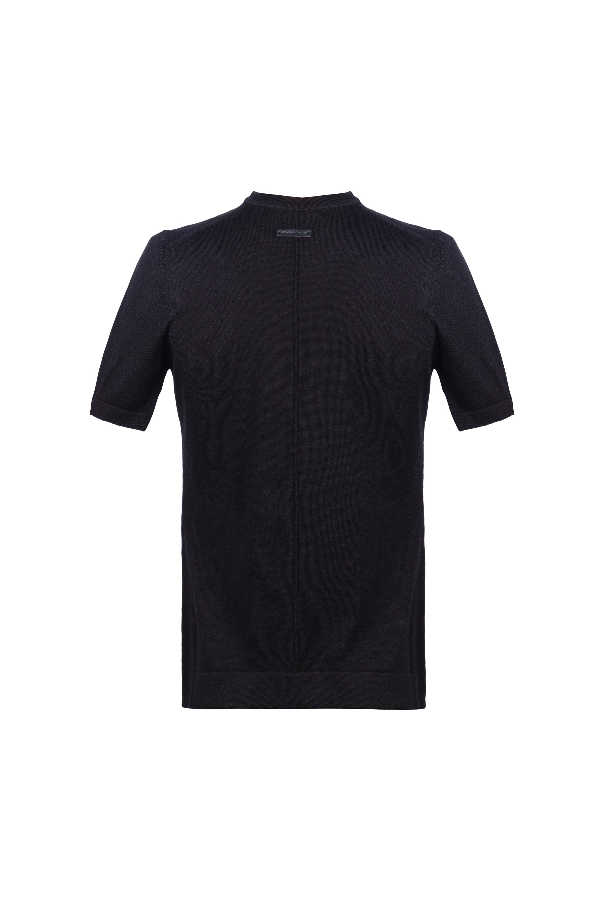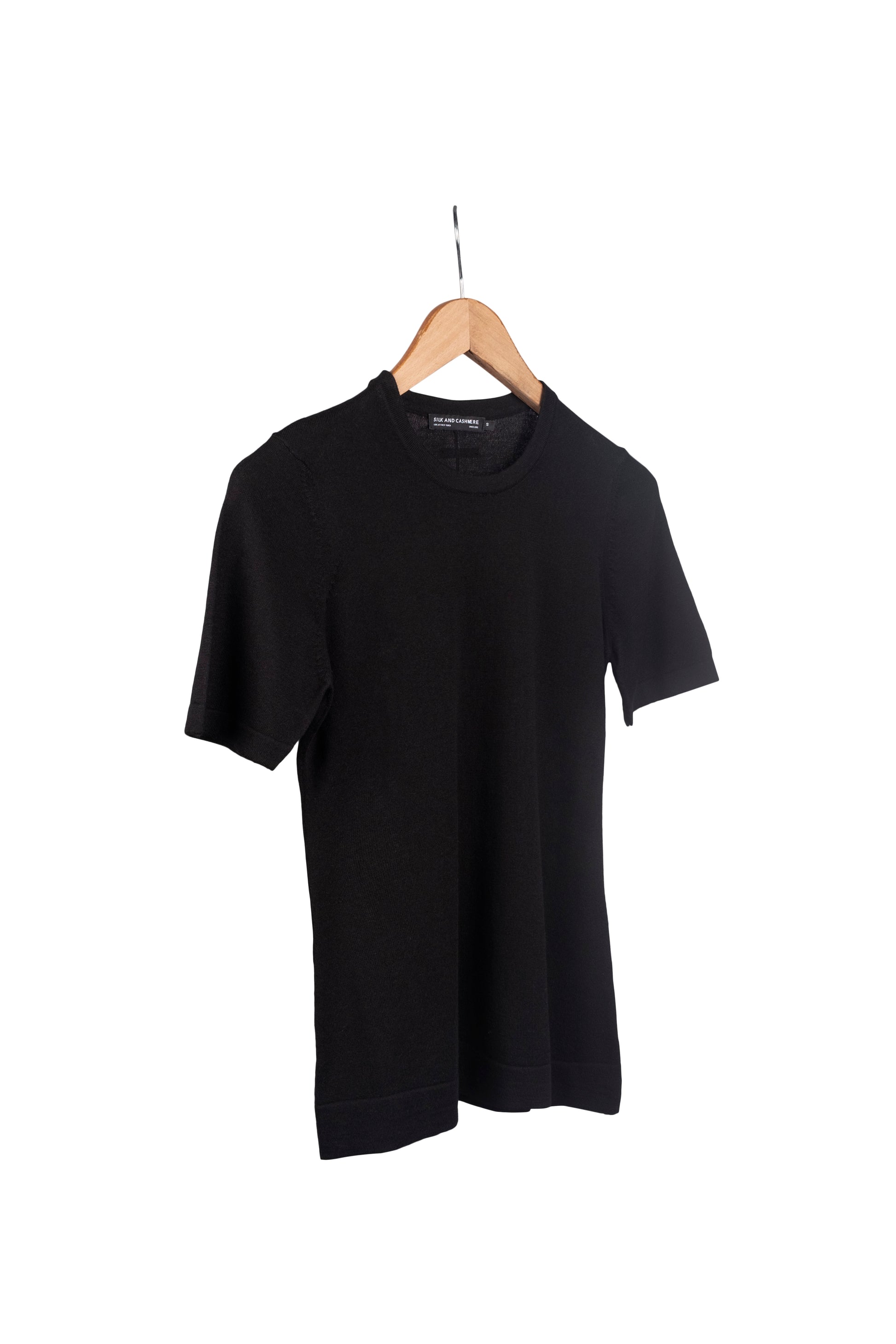 Siyah Zoe İpek Kaşmir Yuvarlak Yaka Kısa Kol Triko