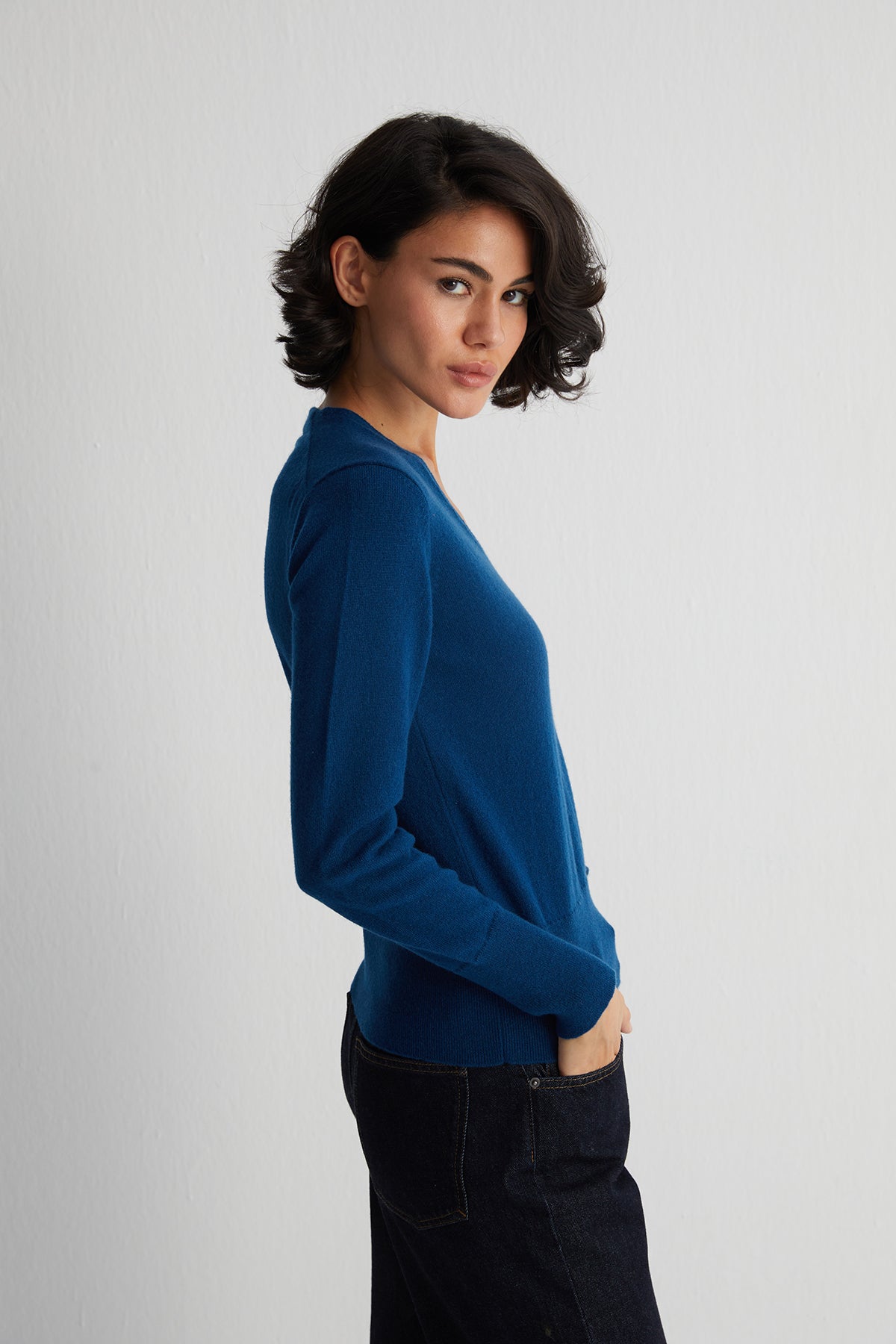 Tavuskuşu Lilly Saf Kaşmir Derin V Yaka Kazak