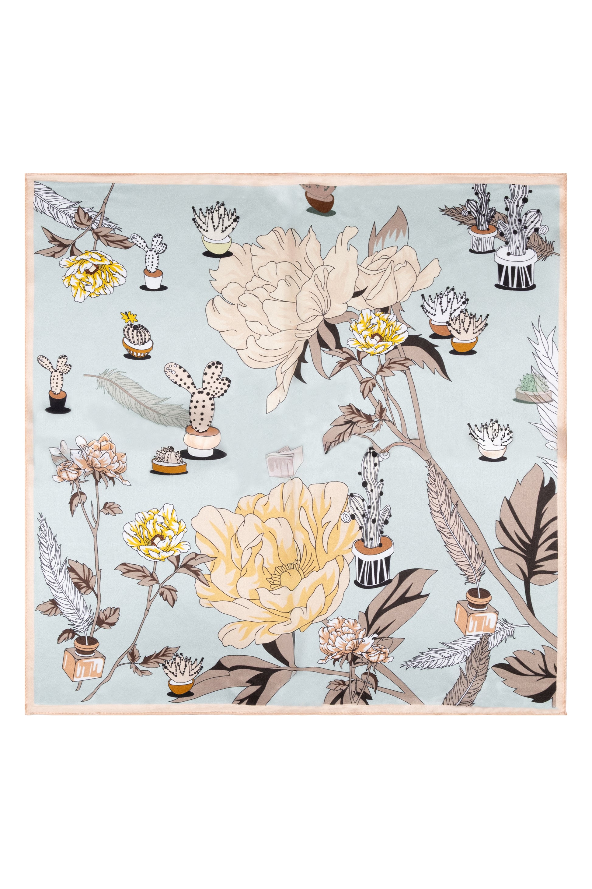 Toz yeşil Laila Saf İpek Kare Eşarp 50x50 cm