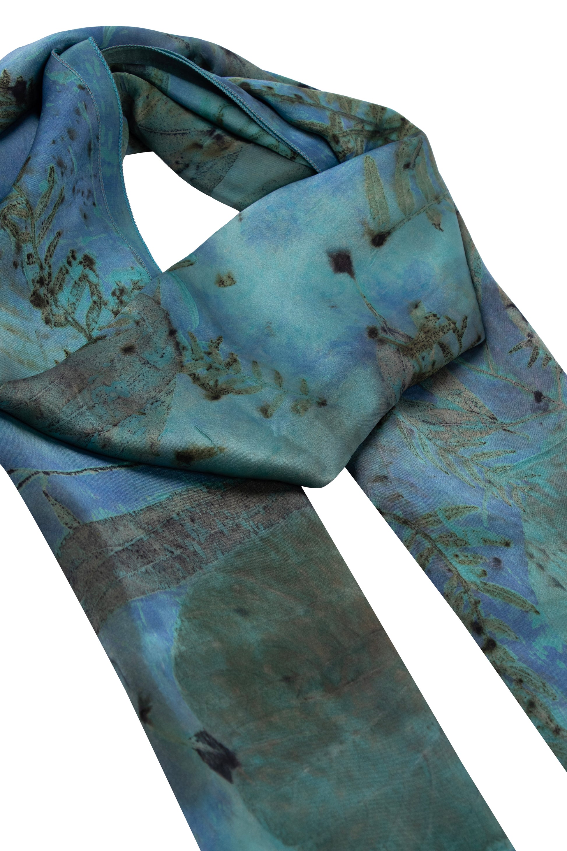 Bu şal, turkuazın huzur veren tonlarıyla sizi doğanın kucağına davet ediyor. %100 saf ipekten üretilmiş bu el baskısı ekolojik şal, zarif desenleri ve yumuşak dokusuyla stilinize incelik katar. Ekolojik üretim yöntemleriyle hazırlanan bu şal, hem zarafetinizi ön plana çıkarır hem de çevreye duyarlılığınızı yansıtır.