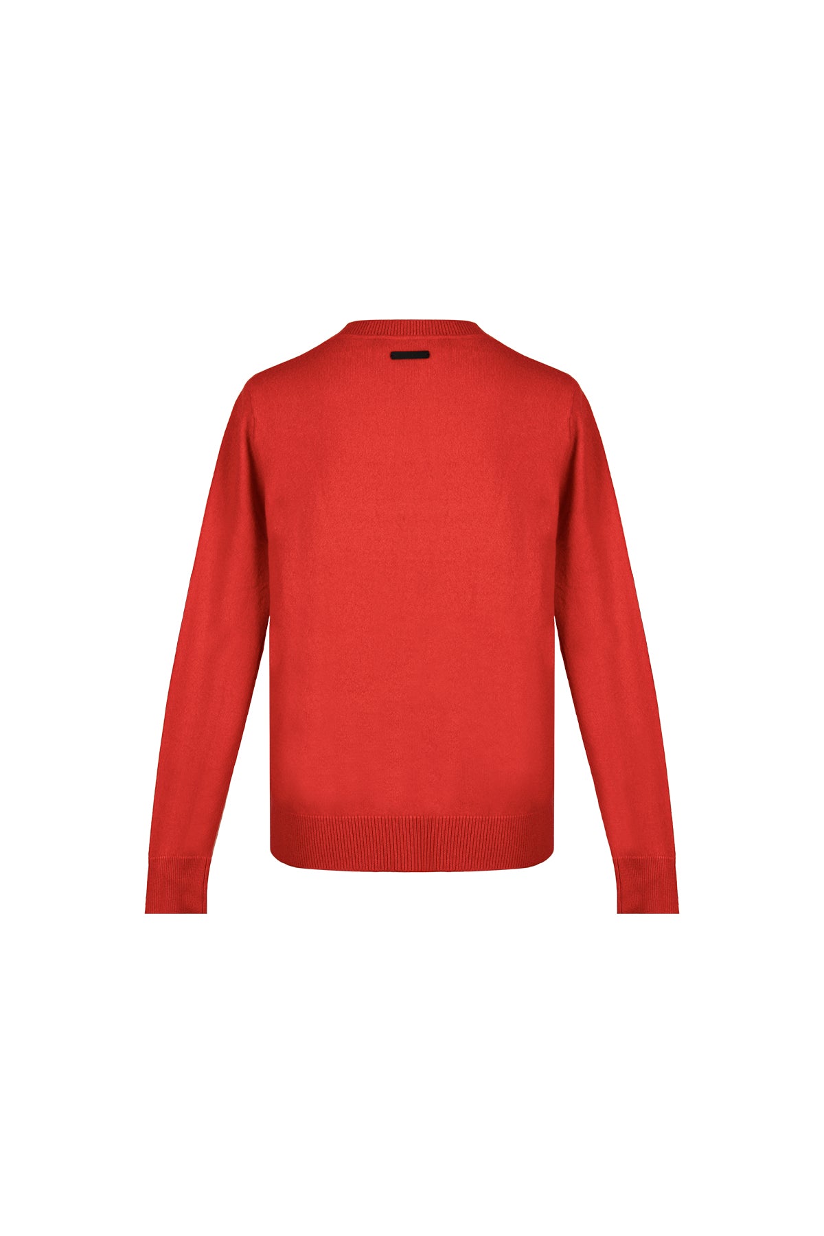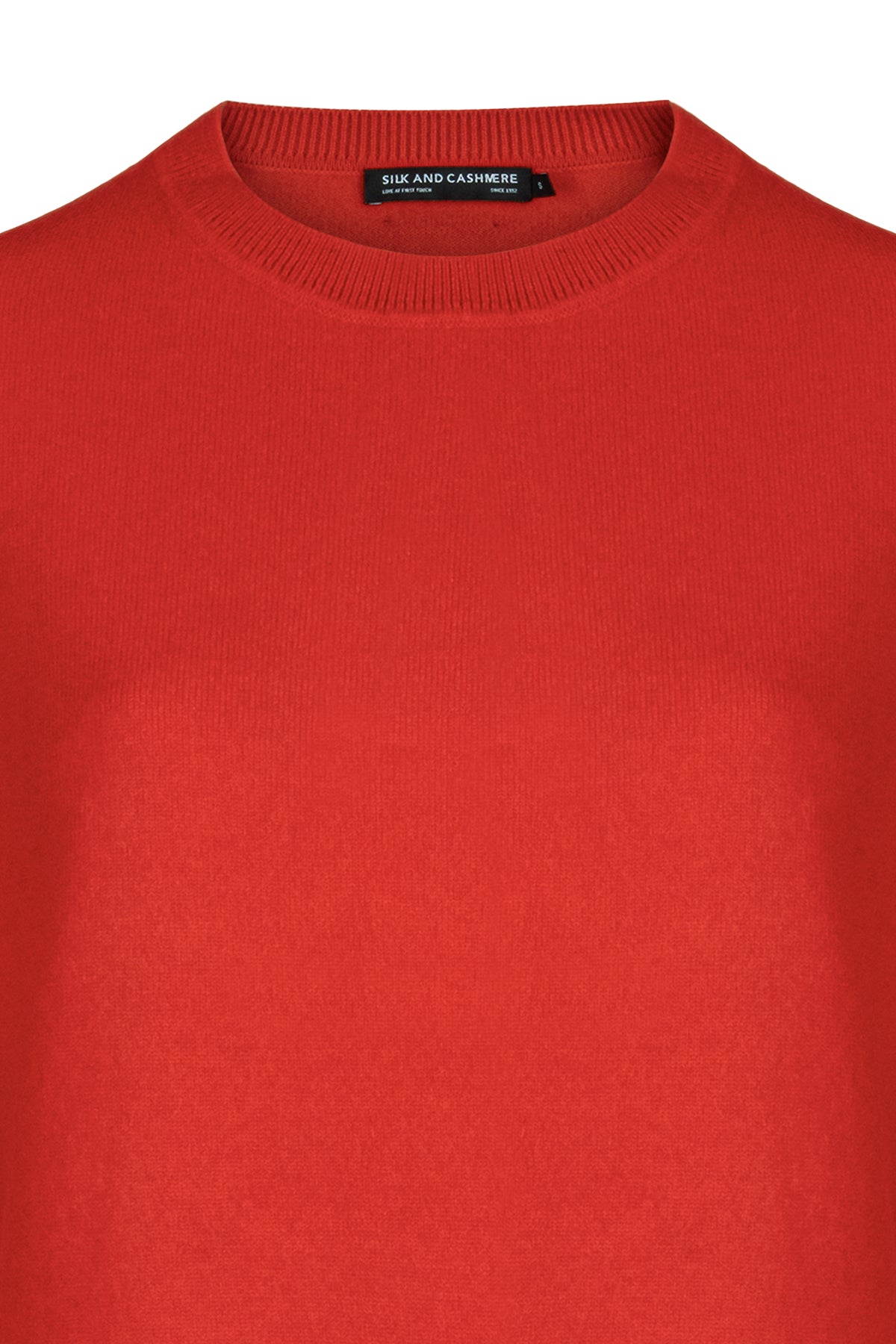 Turuncu Agata Saf Kaşmir Yuvarlak Yaka Kazak