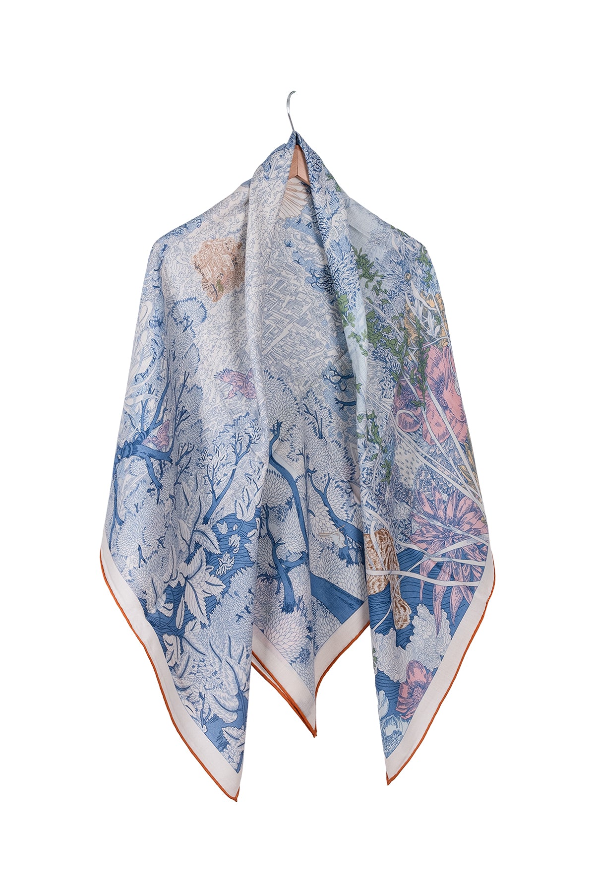 Turuncu Aqua Linda Kaşmir Desenli Kare Eşarp 140x140 cm