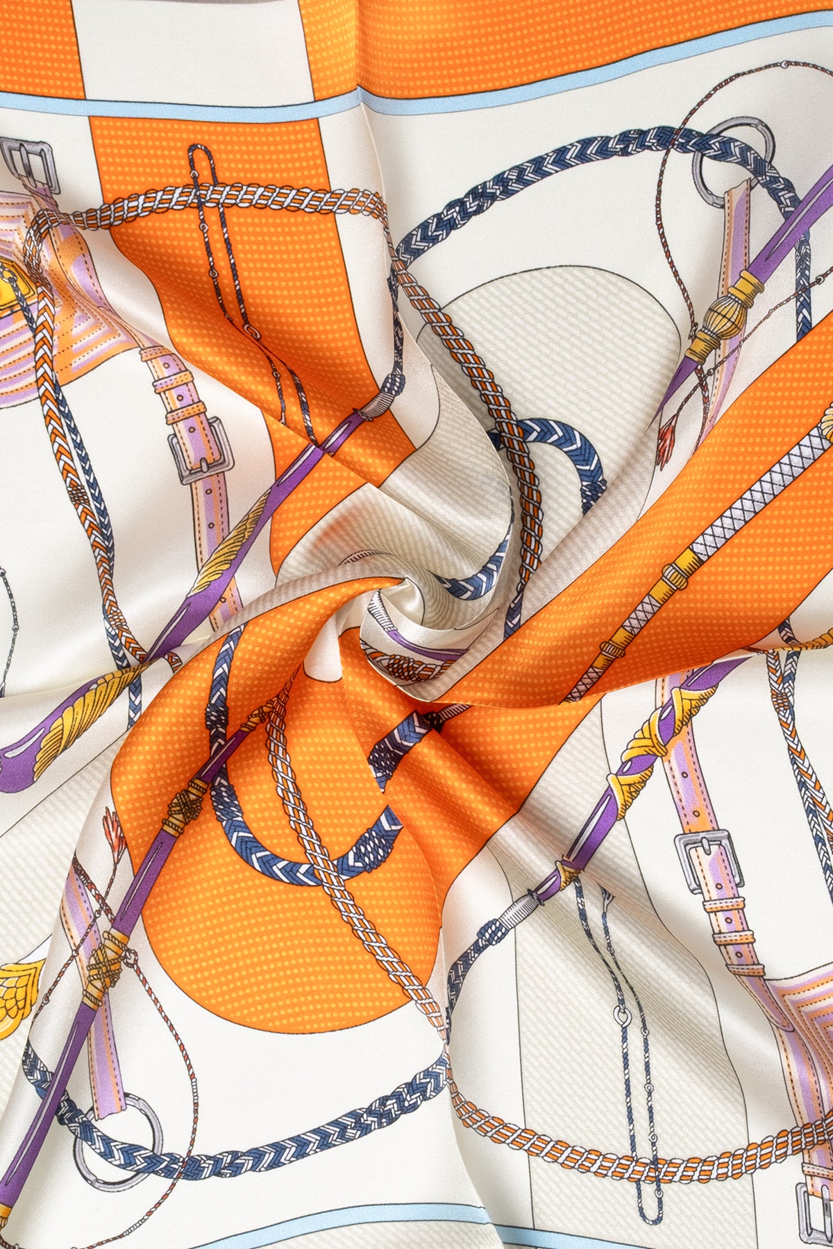Turuncu Bej Laila Saf İpek Kare Eşarp 50x50 cm