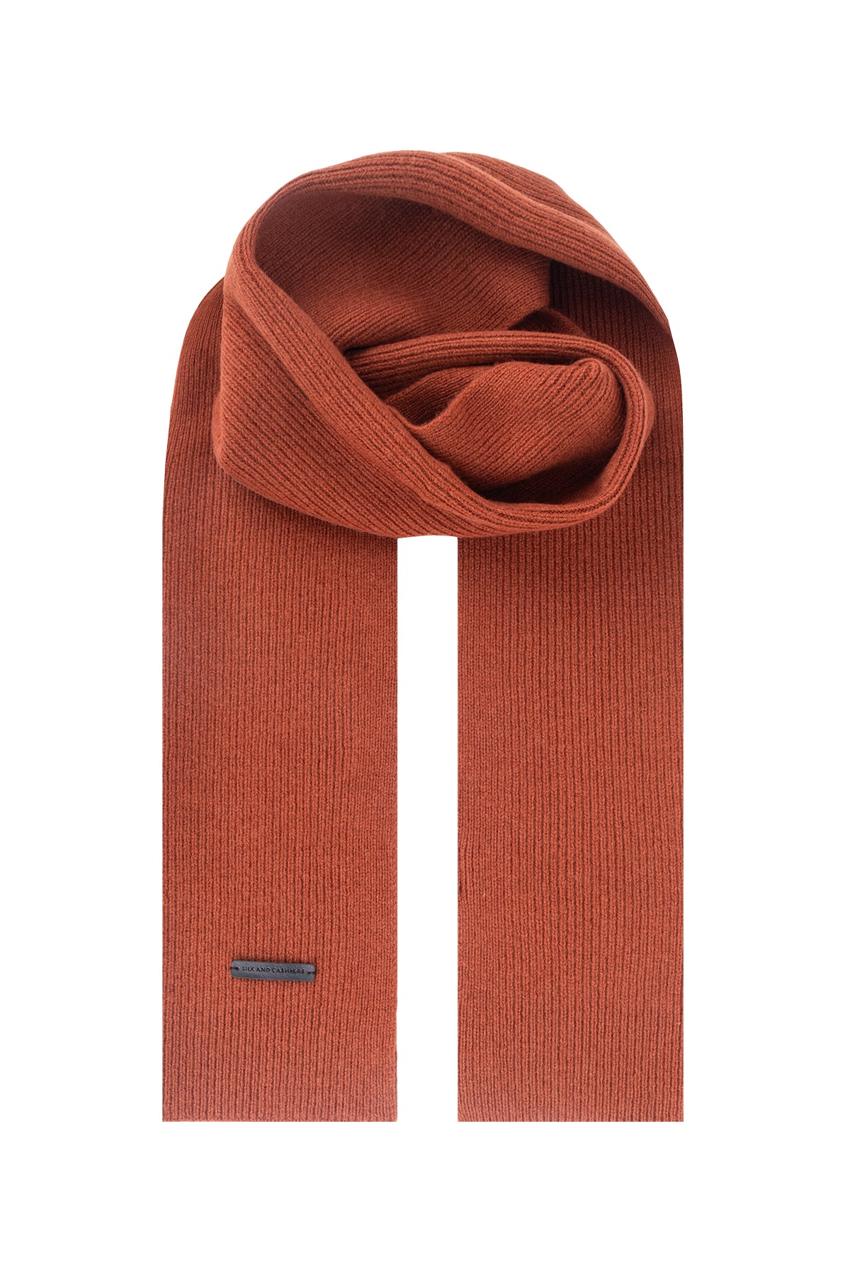 Turuncu Copenhagen Saf Yün Ribana Örme Atkı 25x150 cm