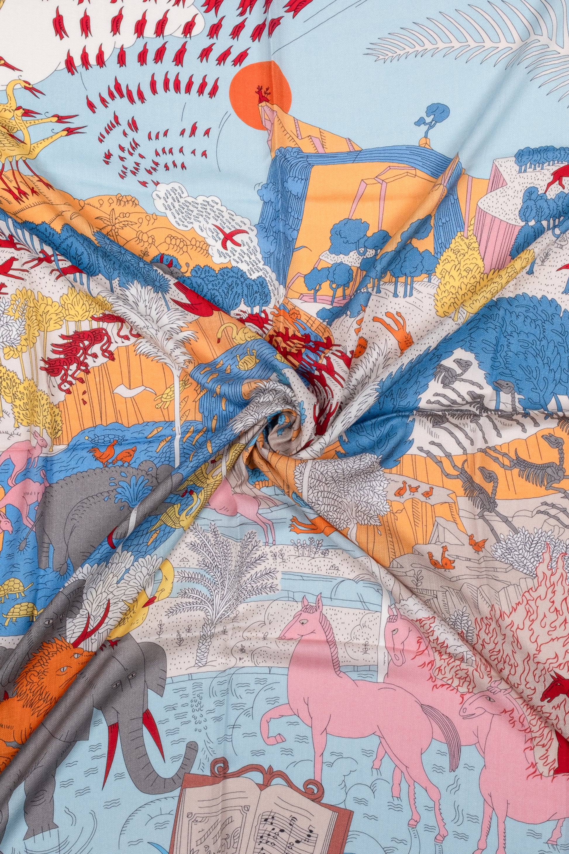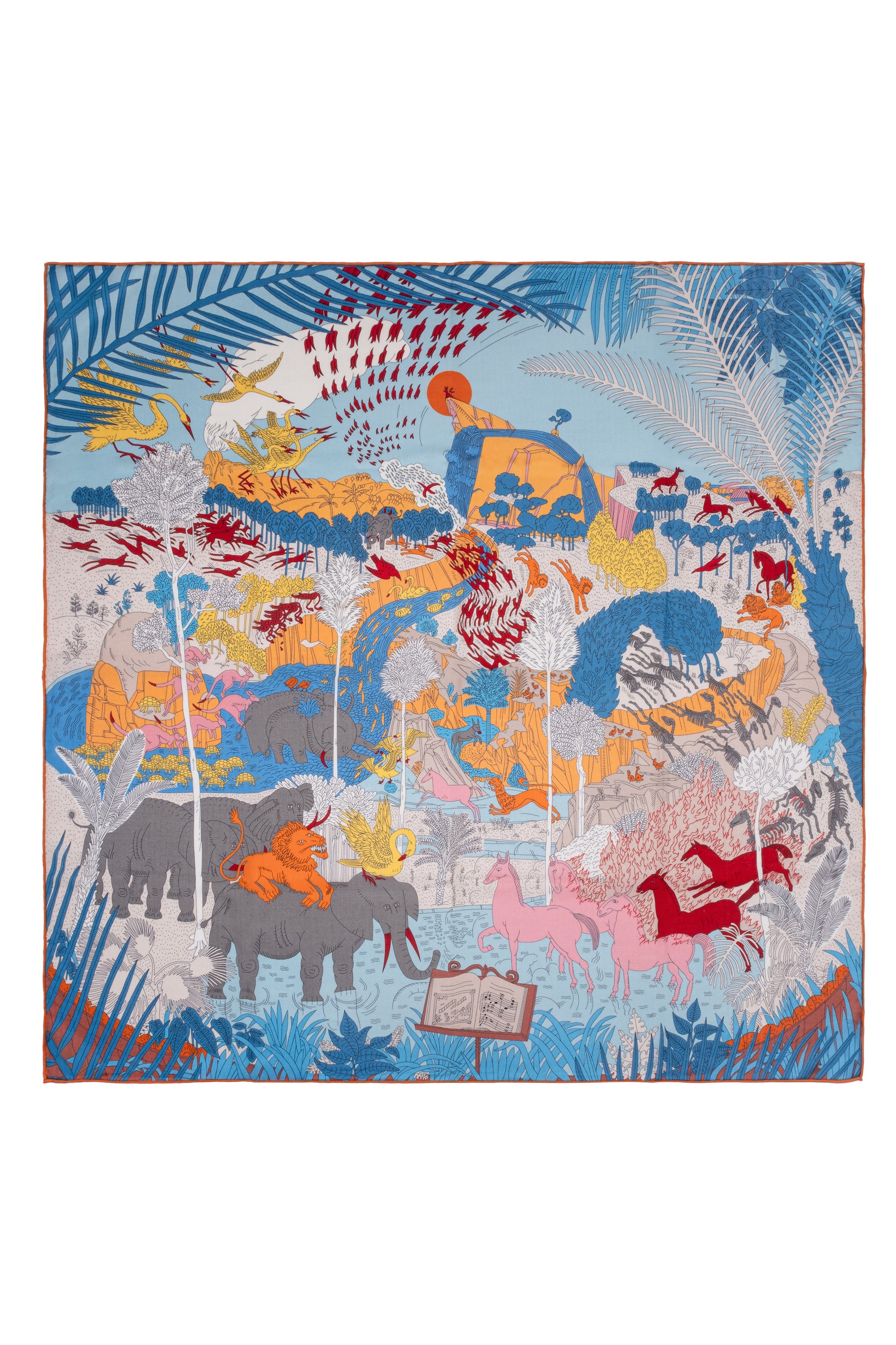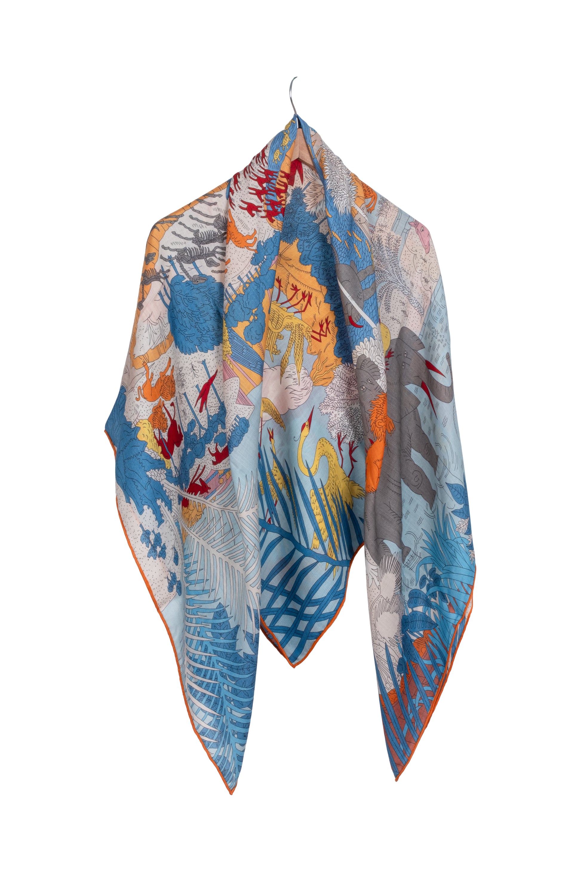 Turuncu Kırmızı Linda Saf Kaşmir Desenli Kare Eşarp 140x140 cm