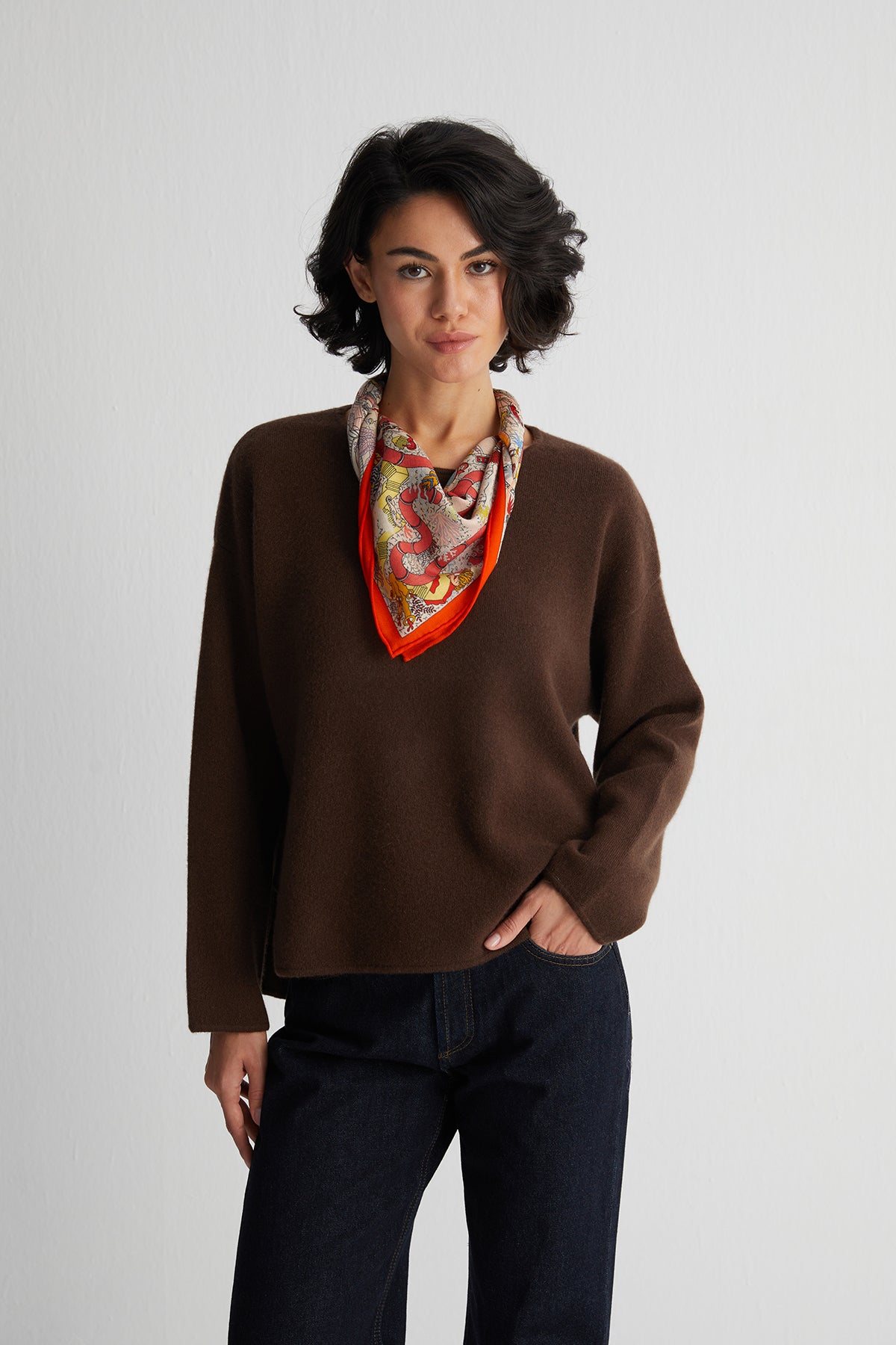 Turuncu Lea Saf Kaşmir Baskılı Eşarp 70x 70 cm