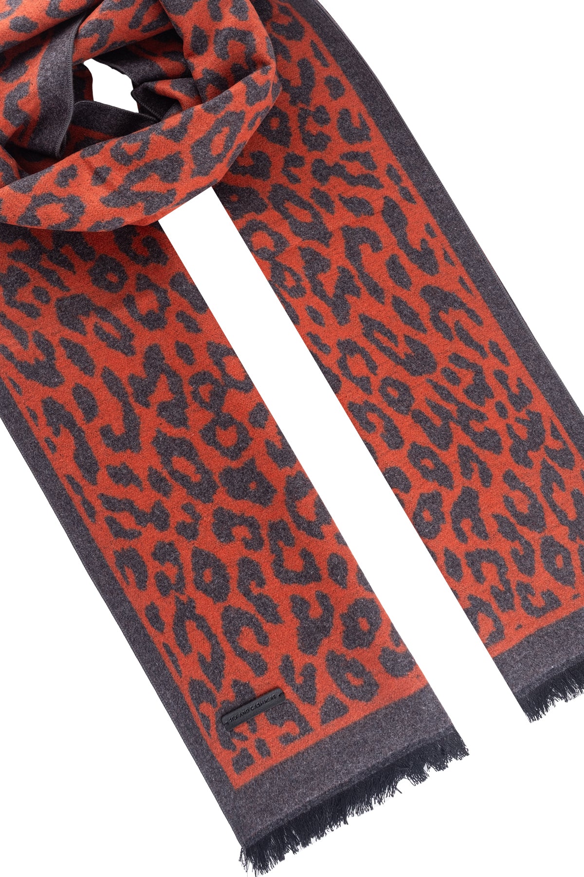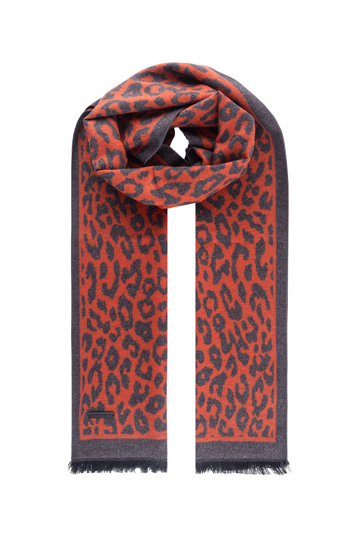 Turuncu Lotus Saf İpek Desenli Atkı 30*177 cm