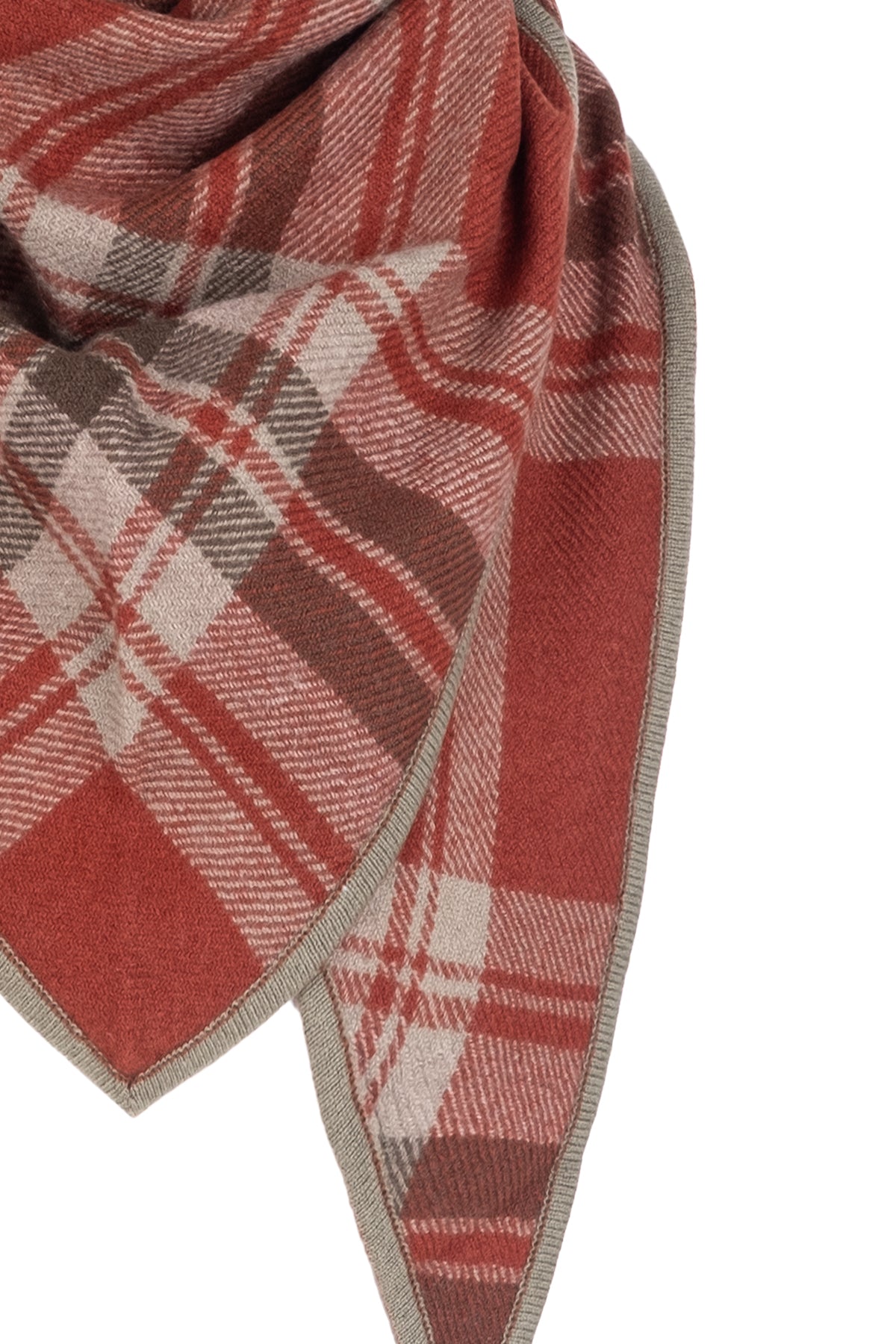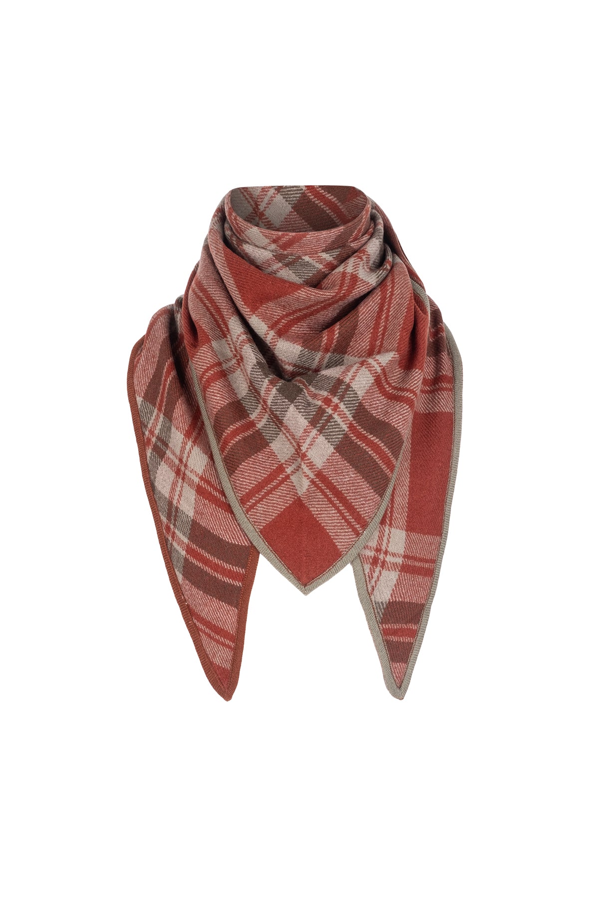 Turuncu Saf Kaşmir Kareli Üçgen Şal 100x100x145 cm