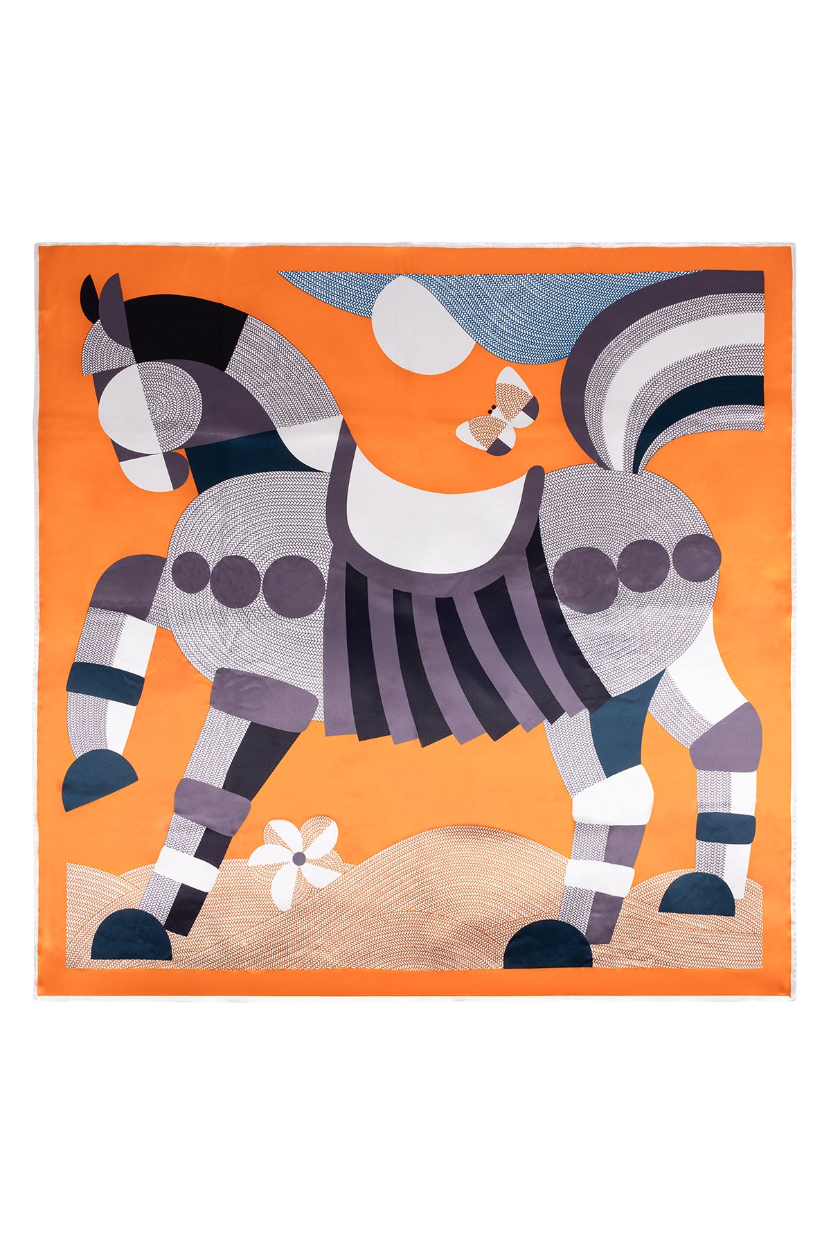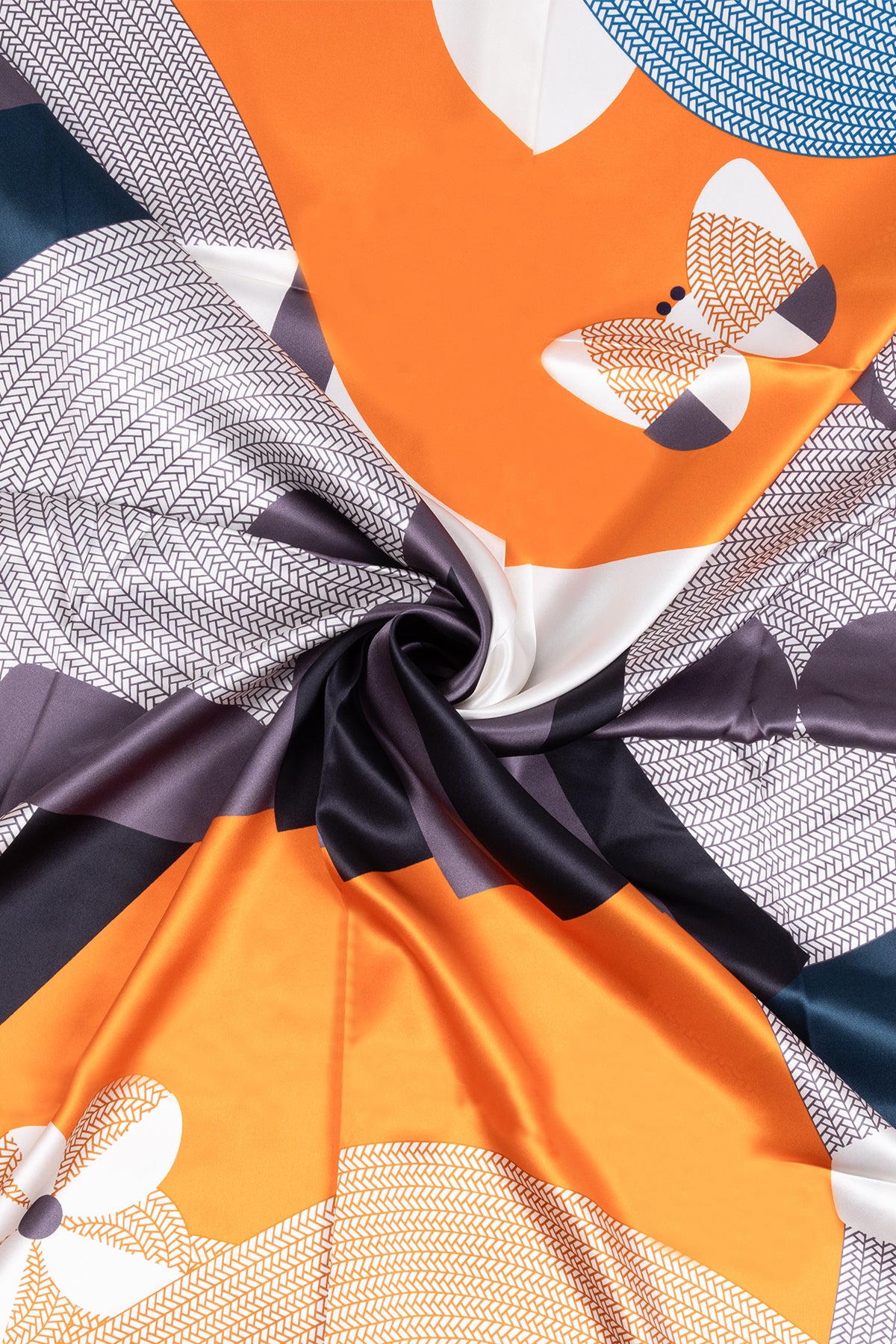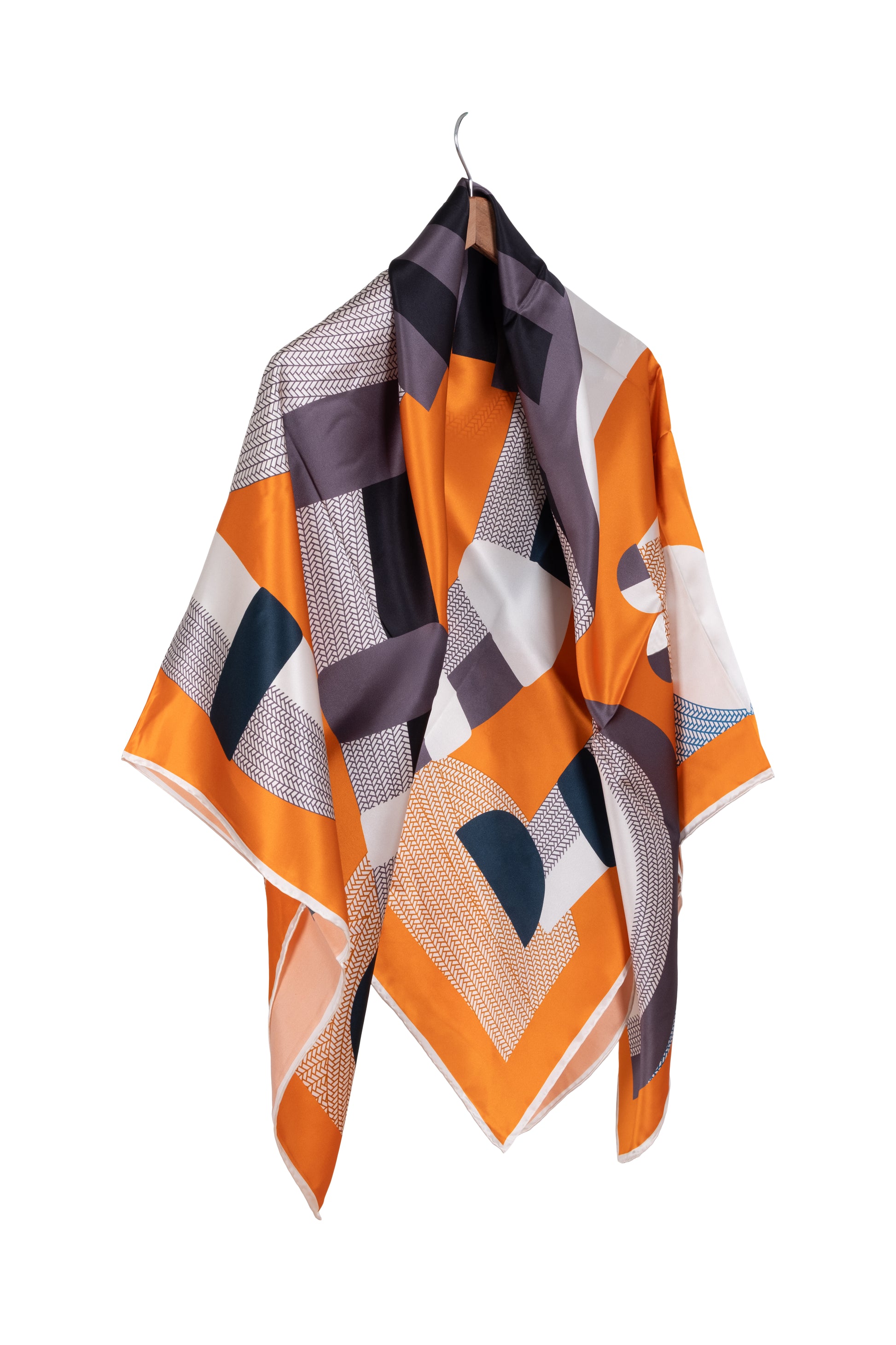 Turuncu Siyah Lina Saf İpek Baskılı Kare Eşarp 140x140