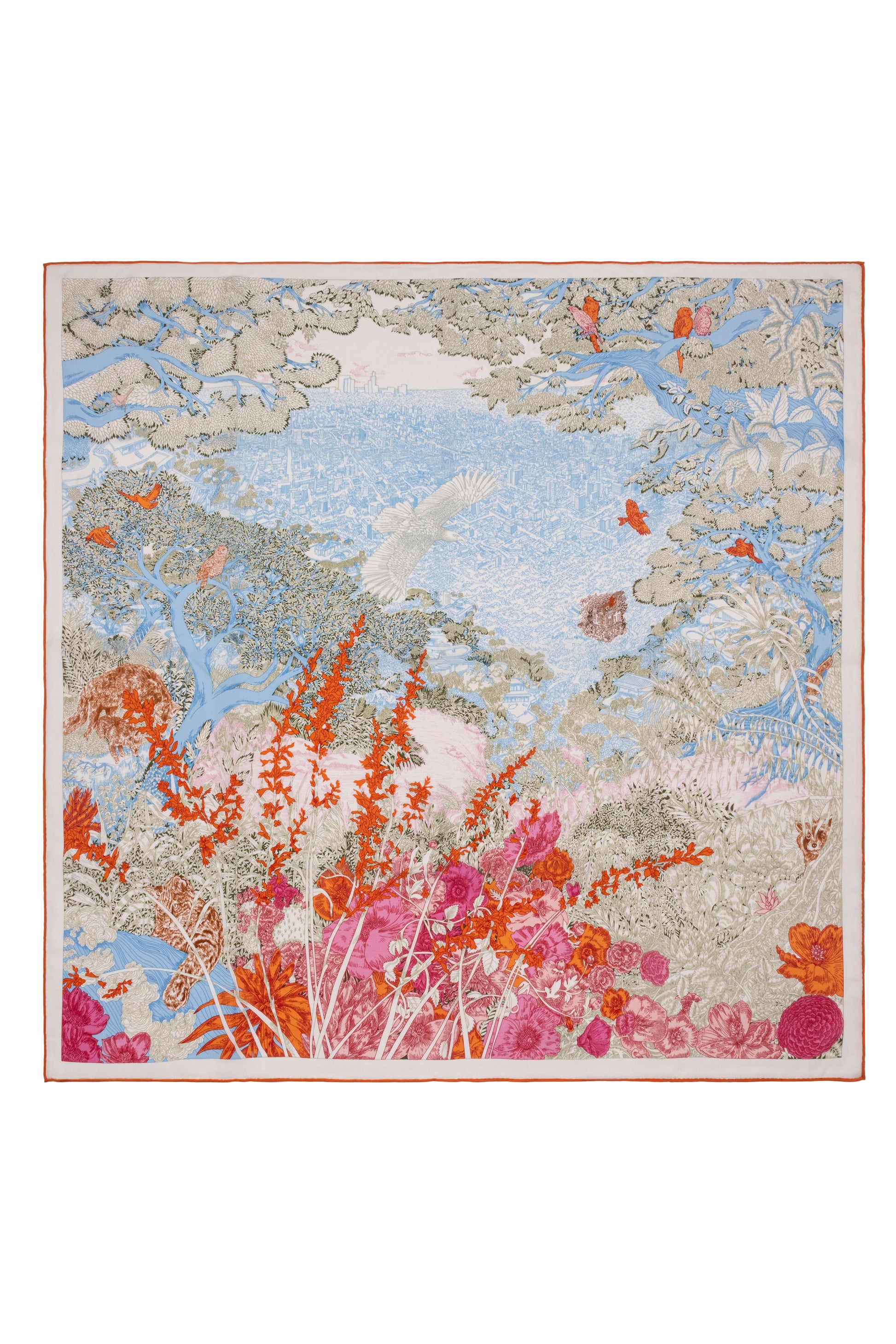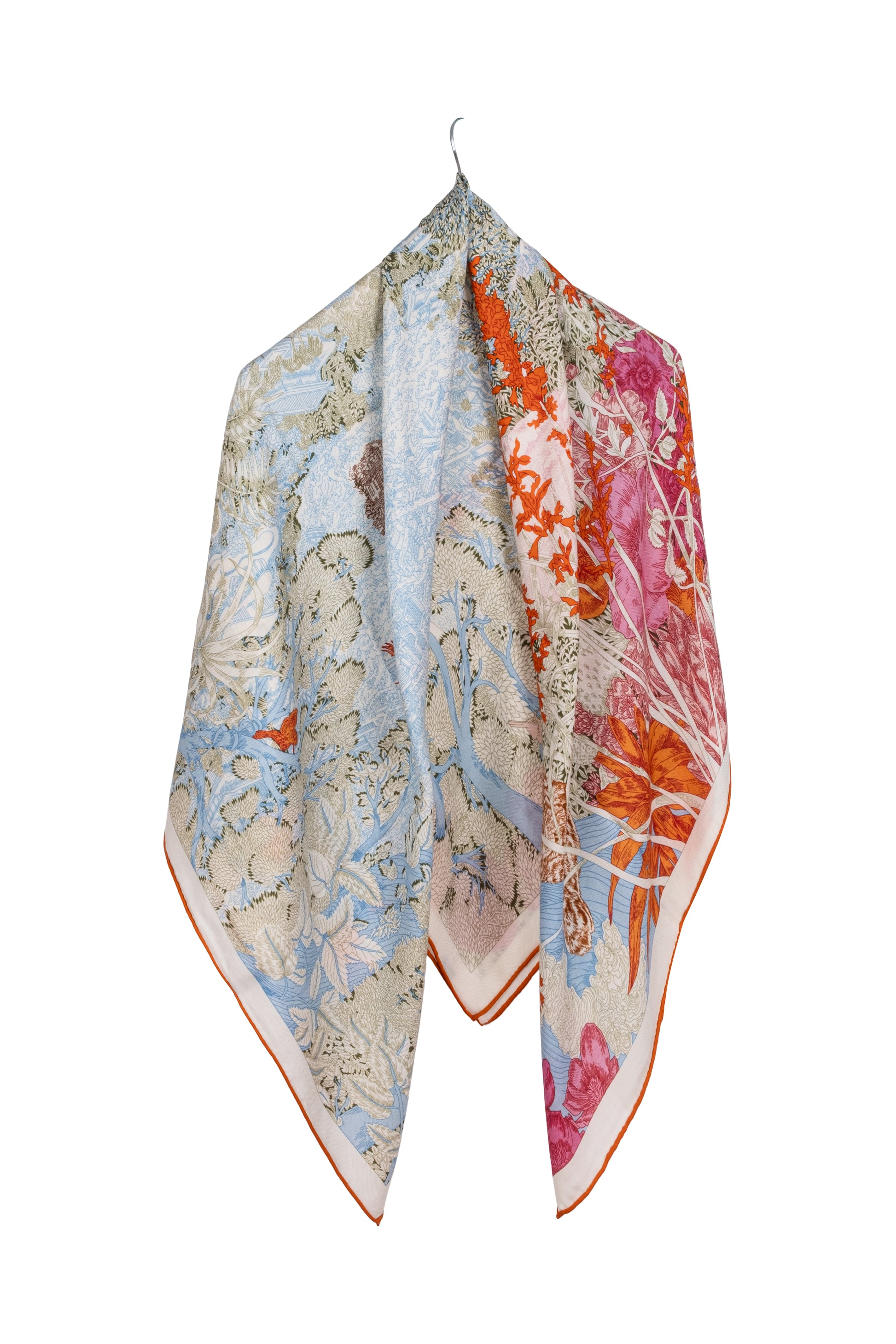 Turuncu Yeşil Linda Saf Kaşmir Desenli Kare Eşarp 140x140 cm