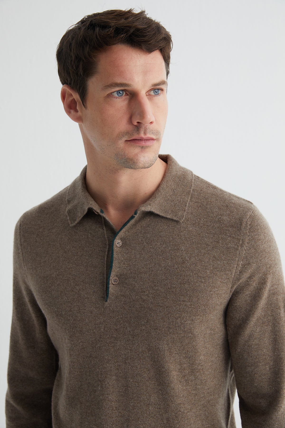 Doğallığın sıcaklığı ile zarif sadeliğin buluştuğu bu polo kazak, saf kaşmirin her dokunuşta hissedilen yumuşak yapısıyla öne çıkar. Gündelikten iş stiline geçişi kolaylaştıran tasarımı, zamansız vizon rengiyle uyum içinde bir duruş sunar.