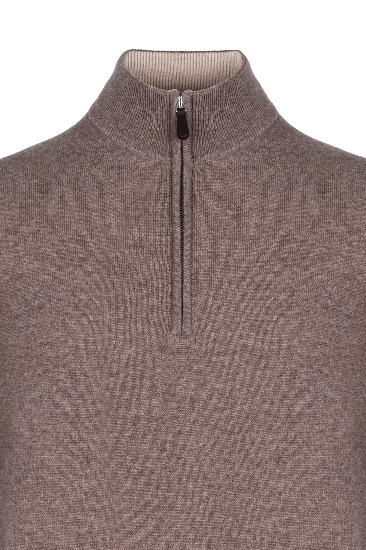 Vizon Saf Kaşmir Yarım Balıkçı Yaka Fermuarlı Kazak