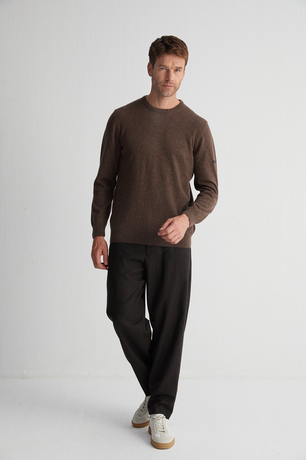Vizon Saf Kaşmir Yuvarlak Yaka Erkek Kazak