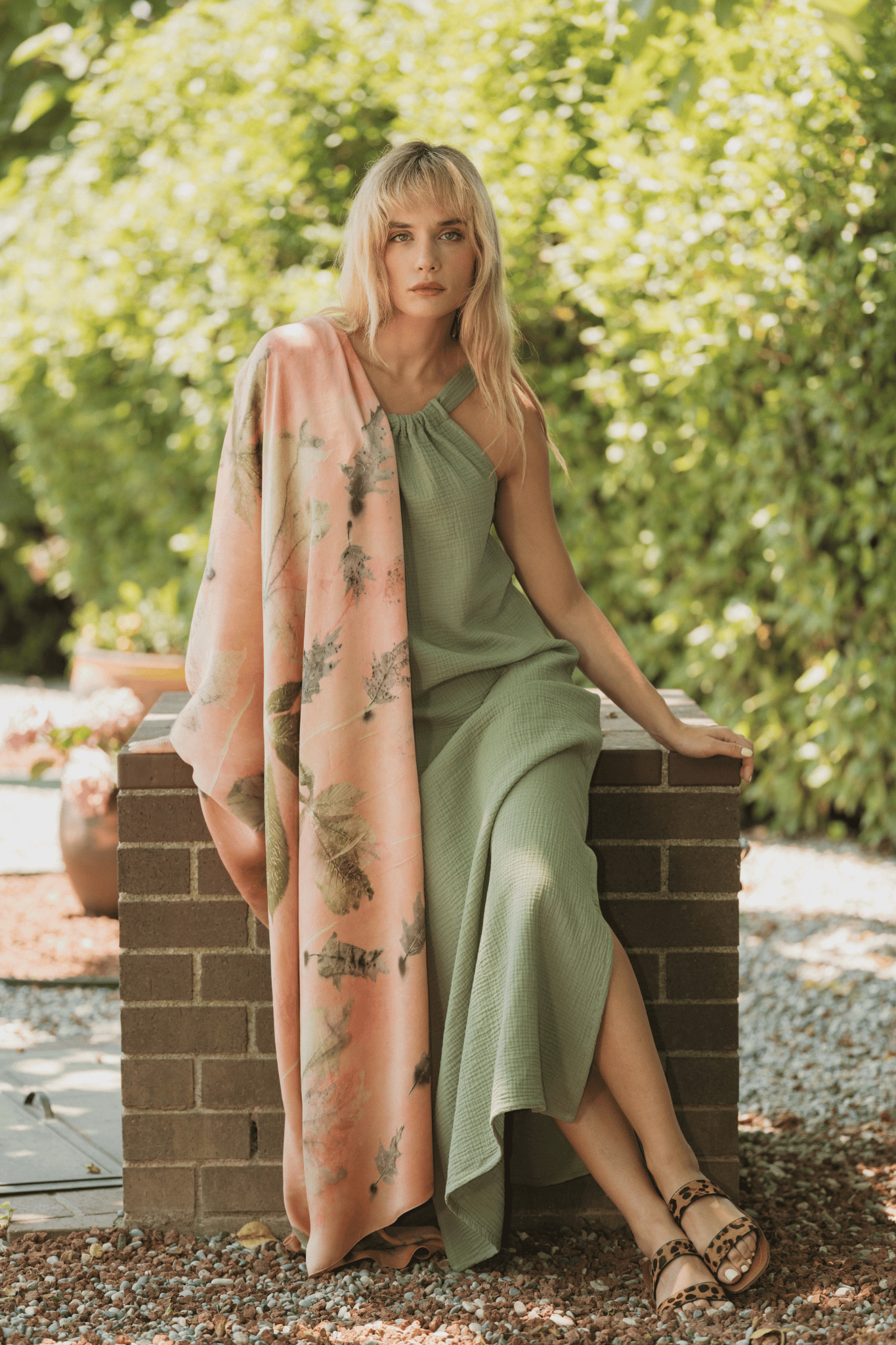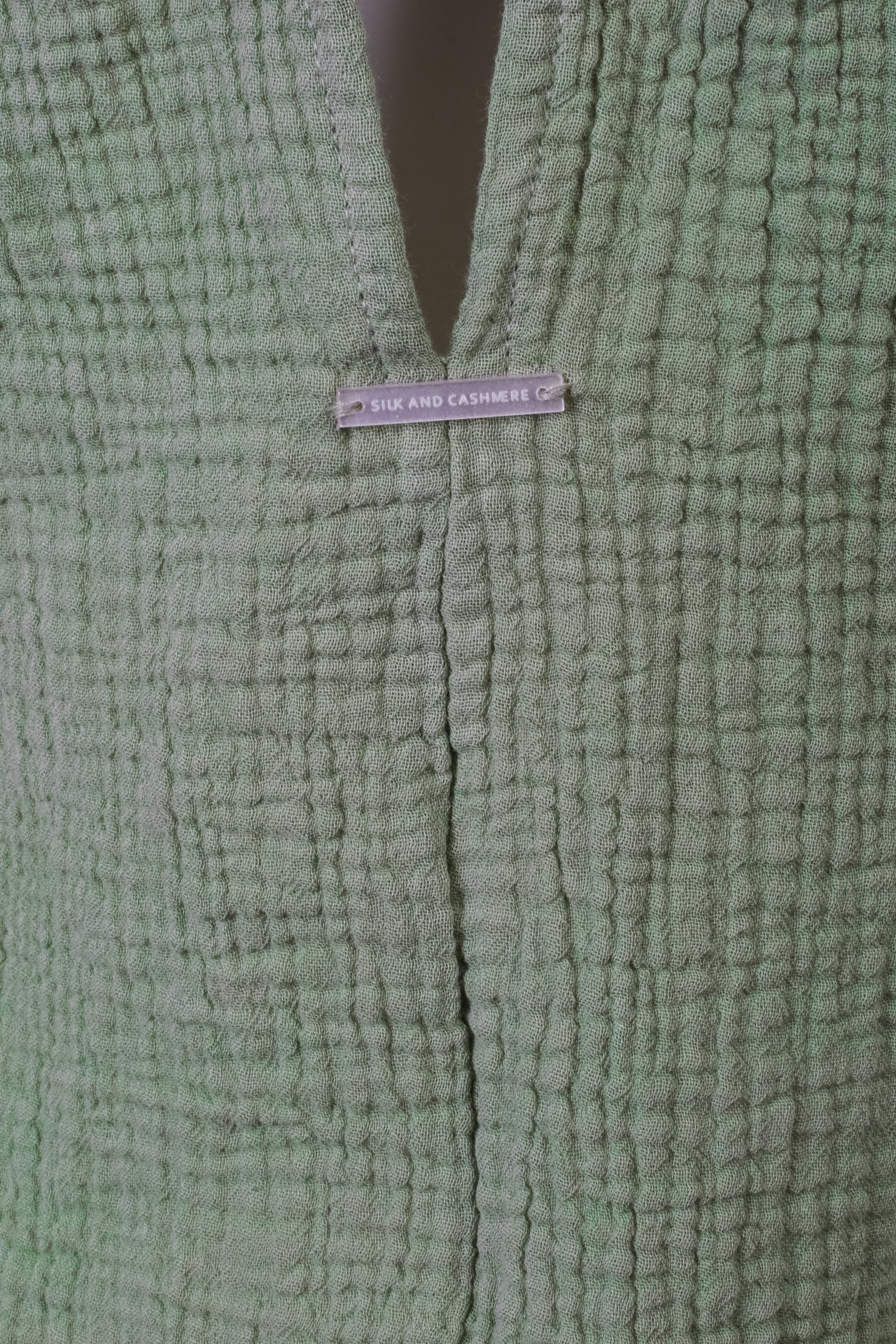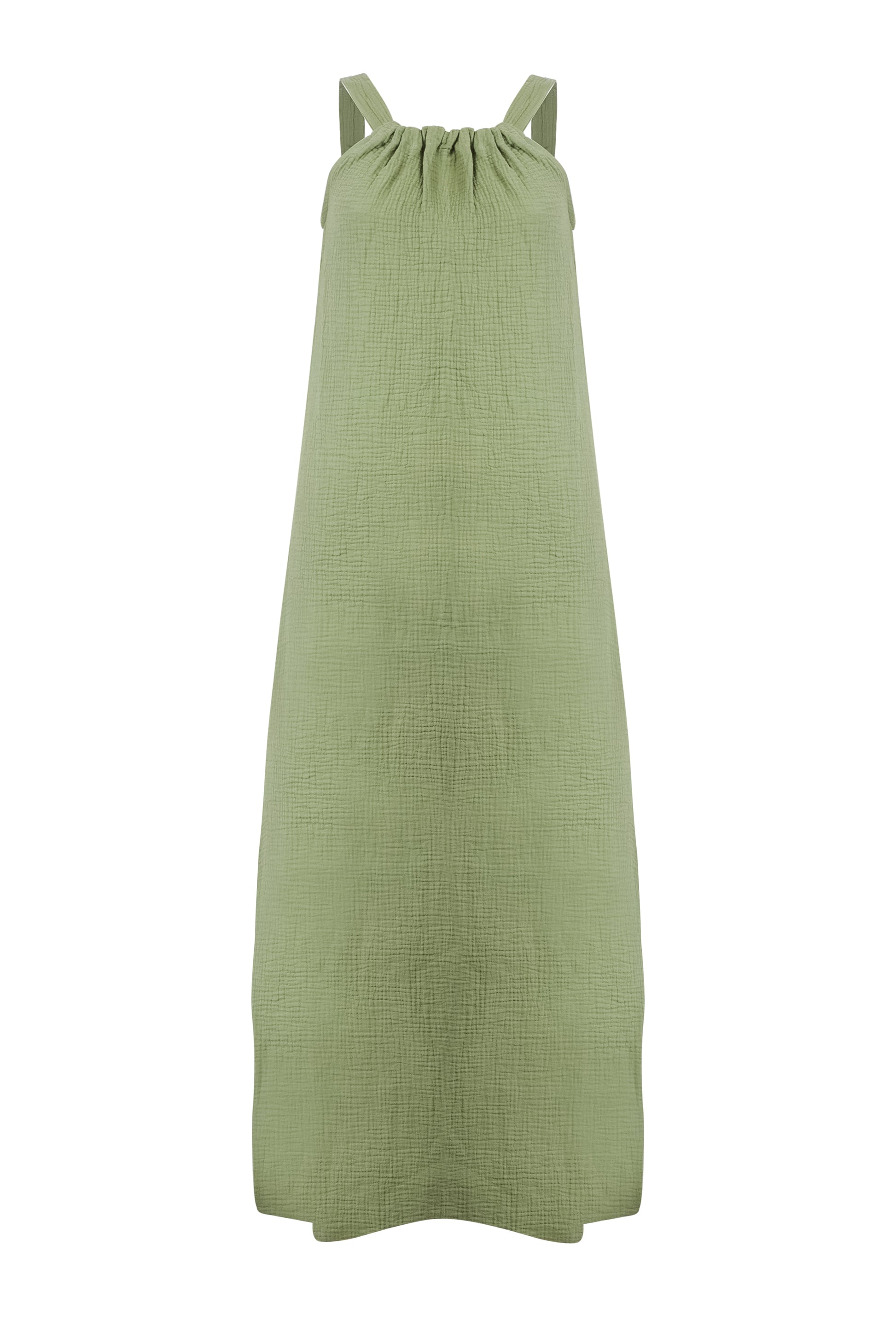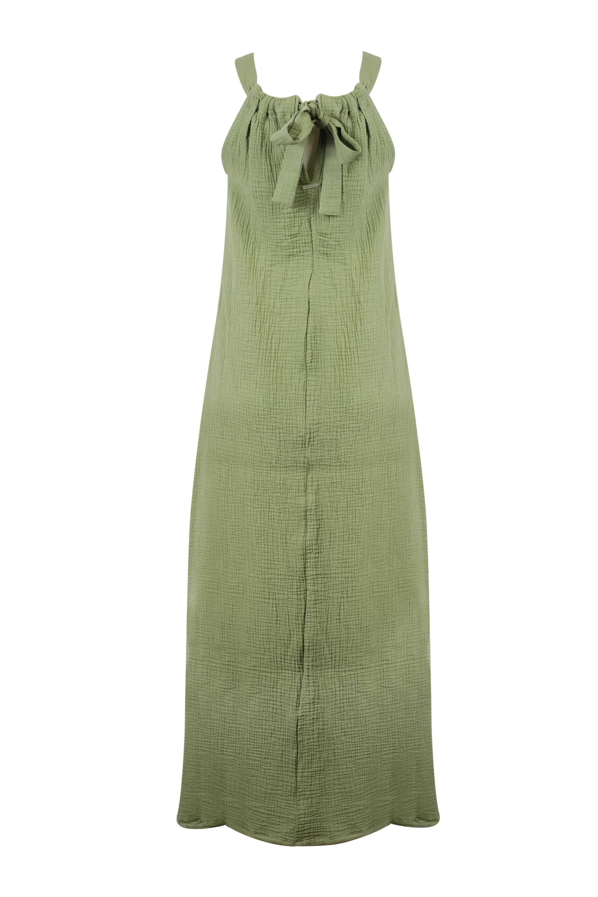 Yeşil Cassandra elbise, yaz aylarının vazgeçilmezi olacak şekilde tasarlanmıştır. %100 pamuklu kumaşı ile gün boyu rahatlık ve serinlik sunar, arka yaka kısmındaki zarif fiyonk detayı ise feminen bir dokunuş sağlar. Geniş ve rahat kesimi, her türlü yaz aktivitesi için mükemmel bir hareket özgürlüğü sunar.