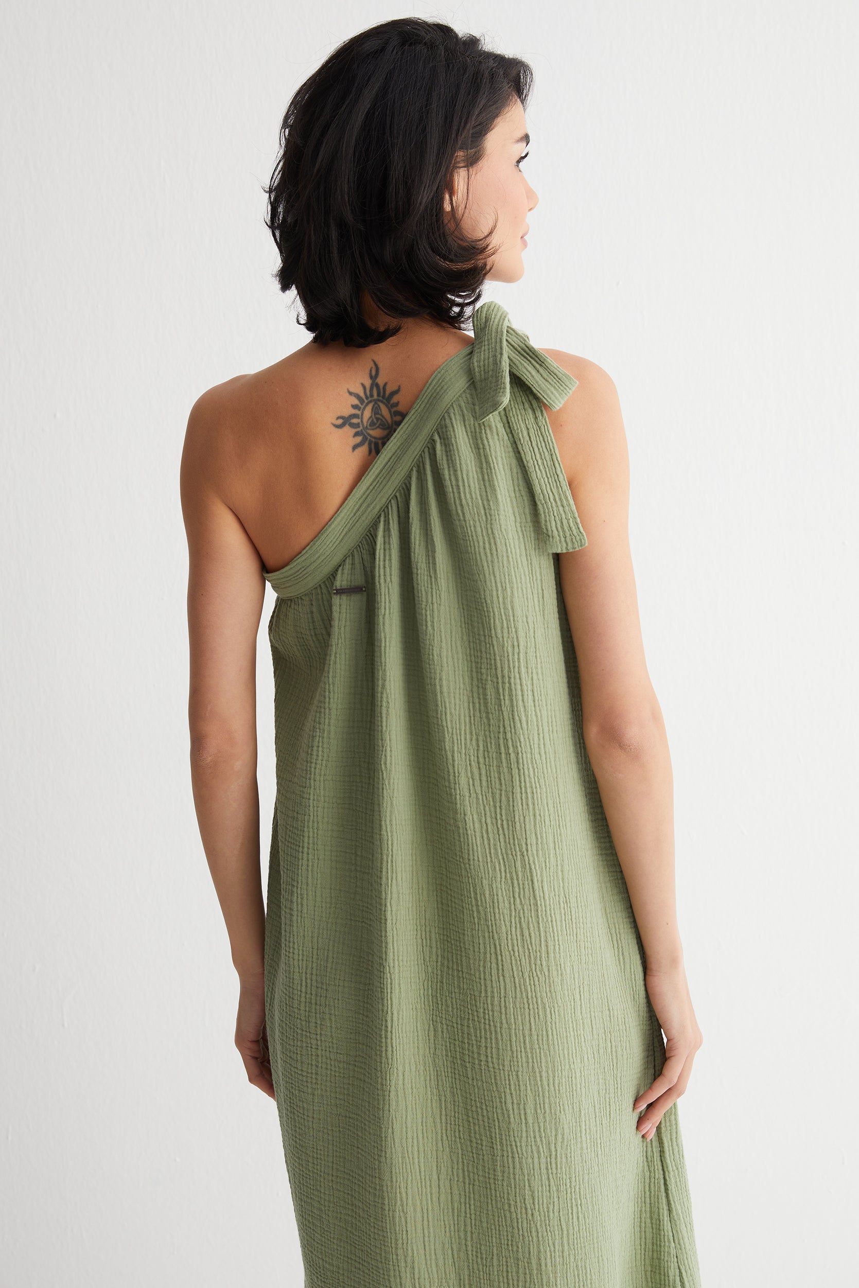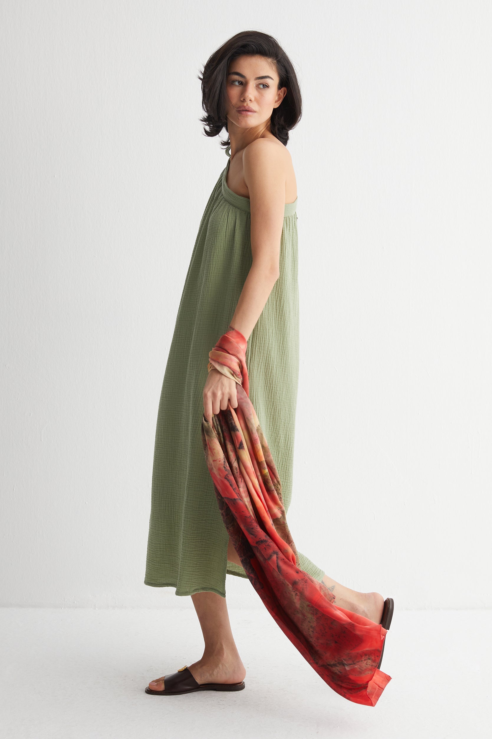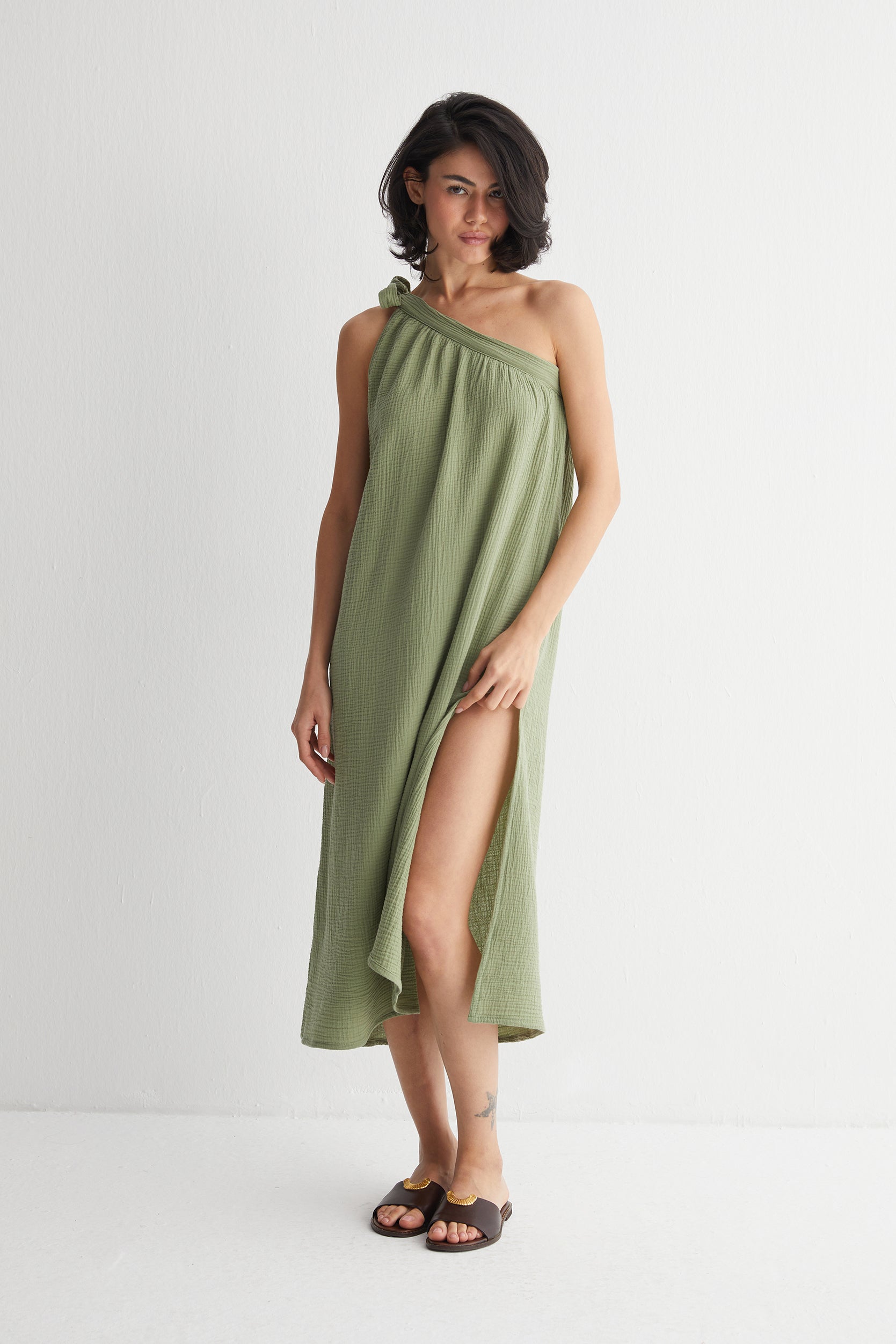 Cassandra Tek Omuz Elbise, doğallığın ve konforun zarif buluşmasını yansıtıyor. Saf pamuk dokusunun hafifliğiyle nefes alan bu tasarım, tek omuz detayının verdiği zarif hareketle öne çıkıyor. Mevsimselliğin ötesine geçen bu parça, bedeninize uyum sağlayan yumuşaklıkta ve sadelikte.