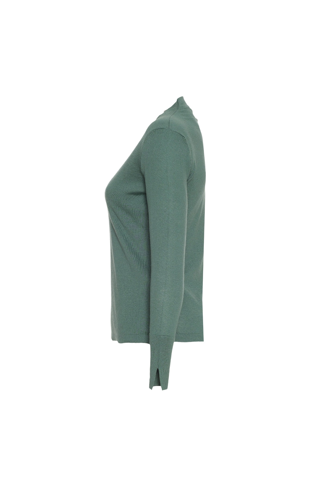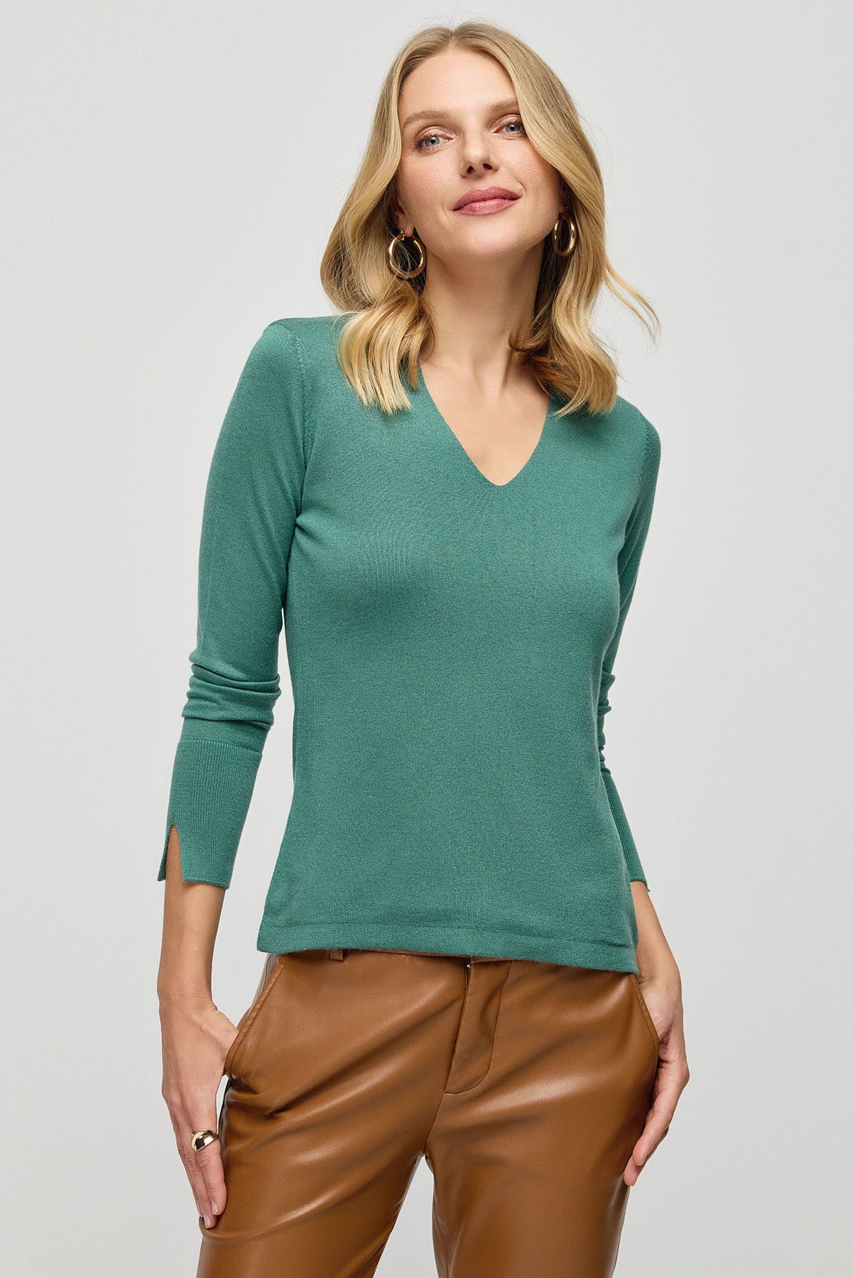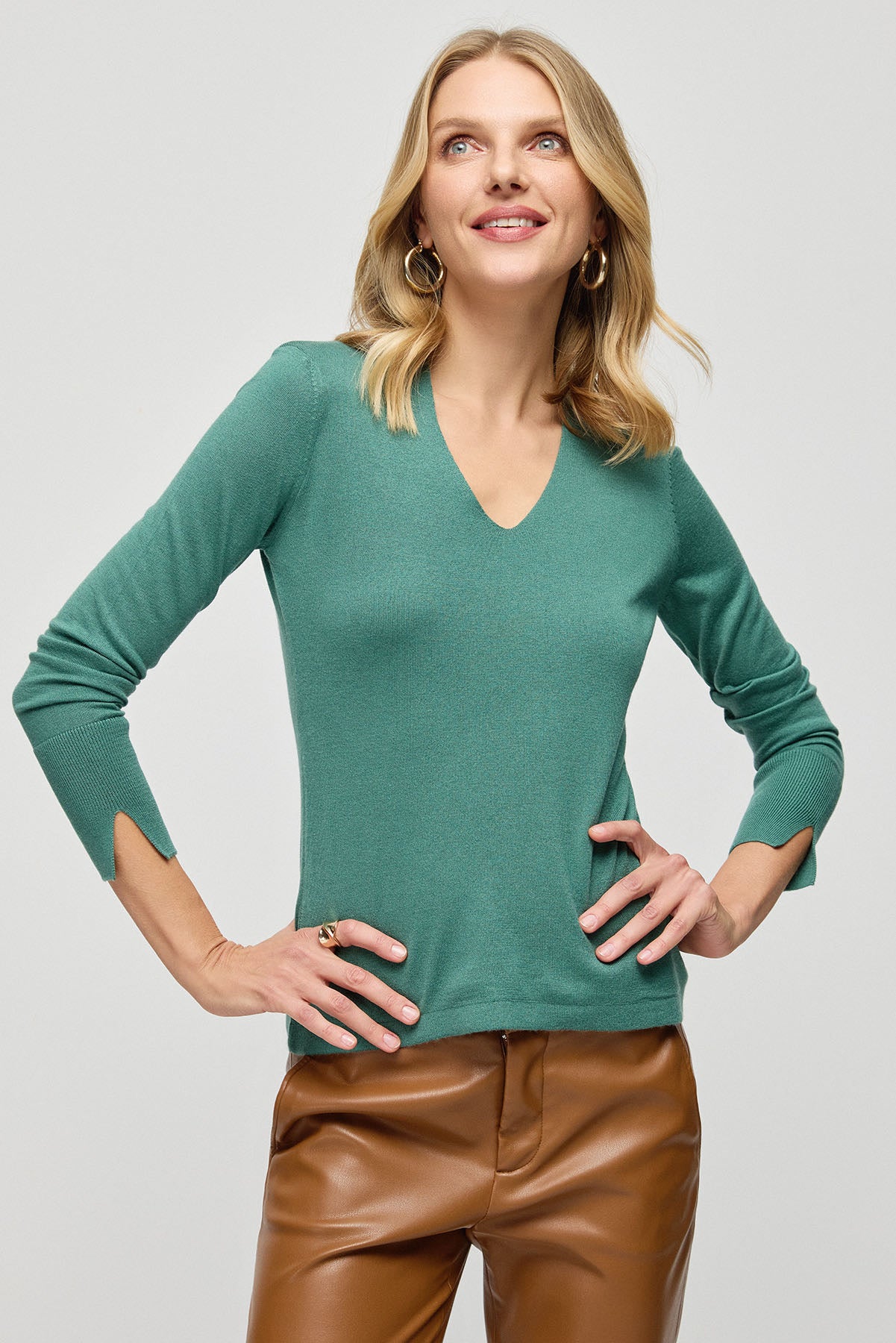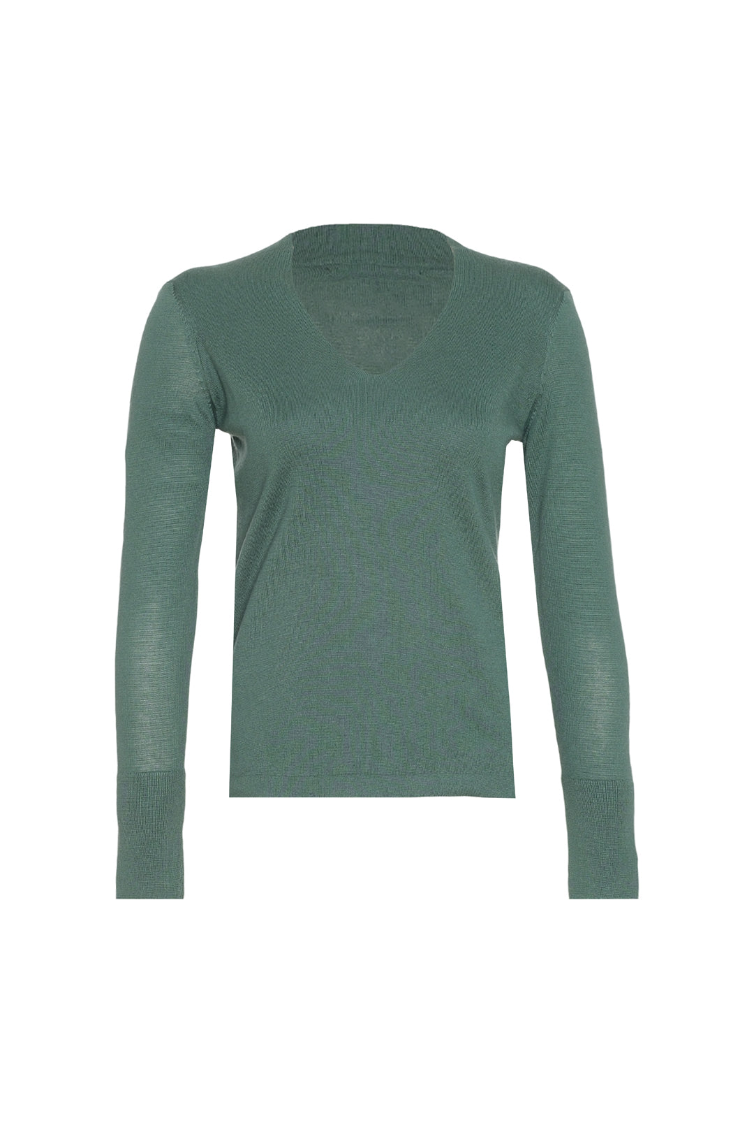 Yeşil İpek Kaşmir Aleyna Derin V Yaka Uzun Kollu Kadın Triko