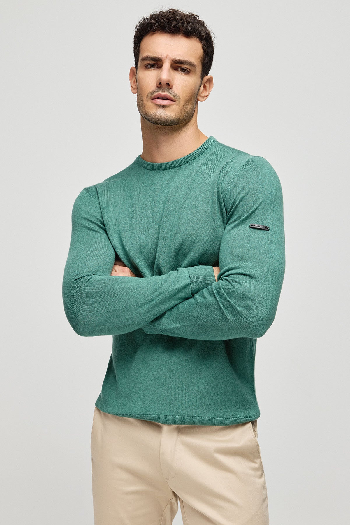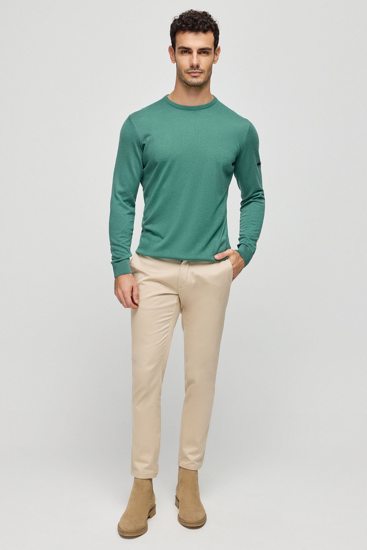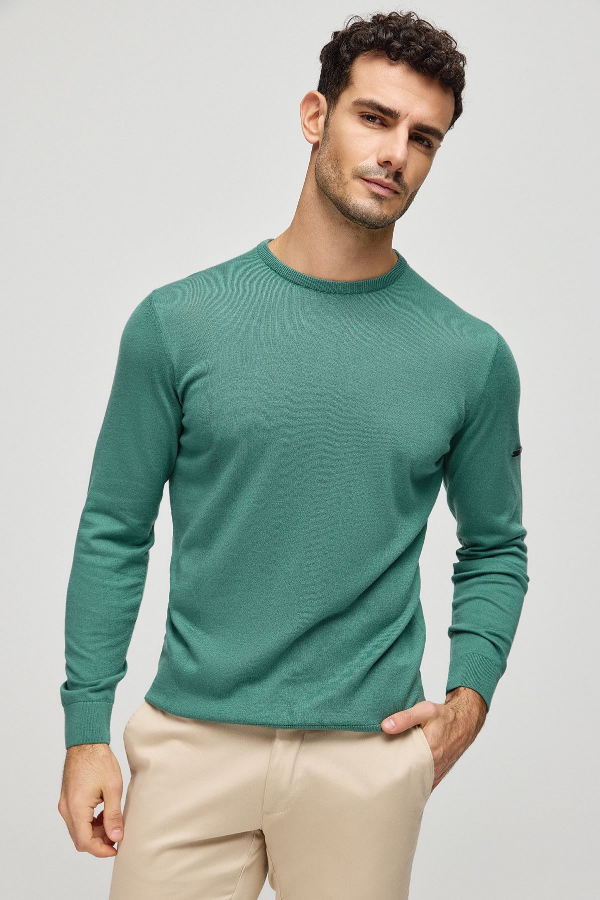 Yeşil İpek Kaşmir Utku Yuvarlak Yaka Uzun Kollu Erkek Triko