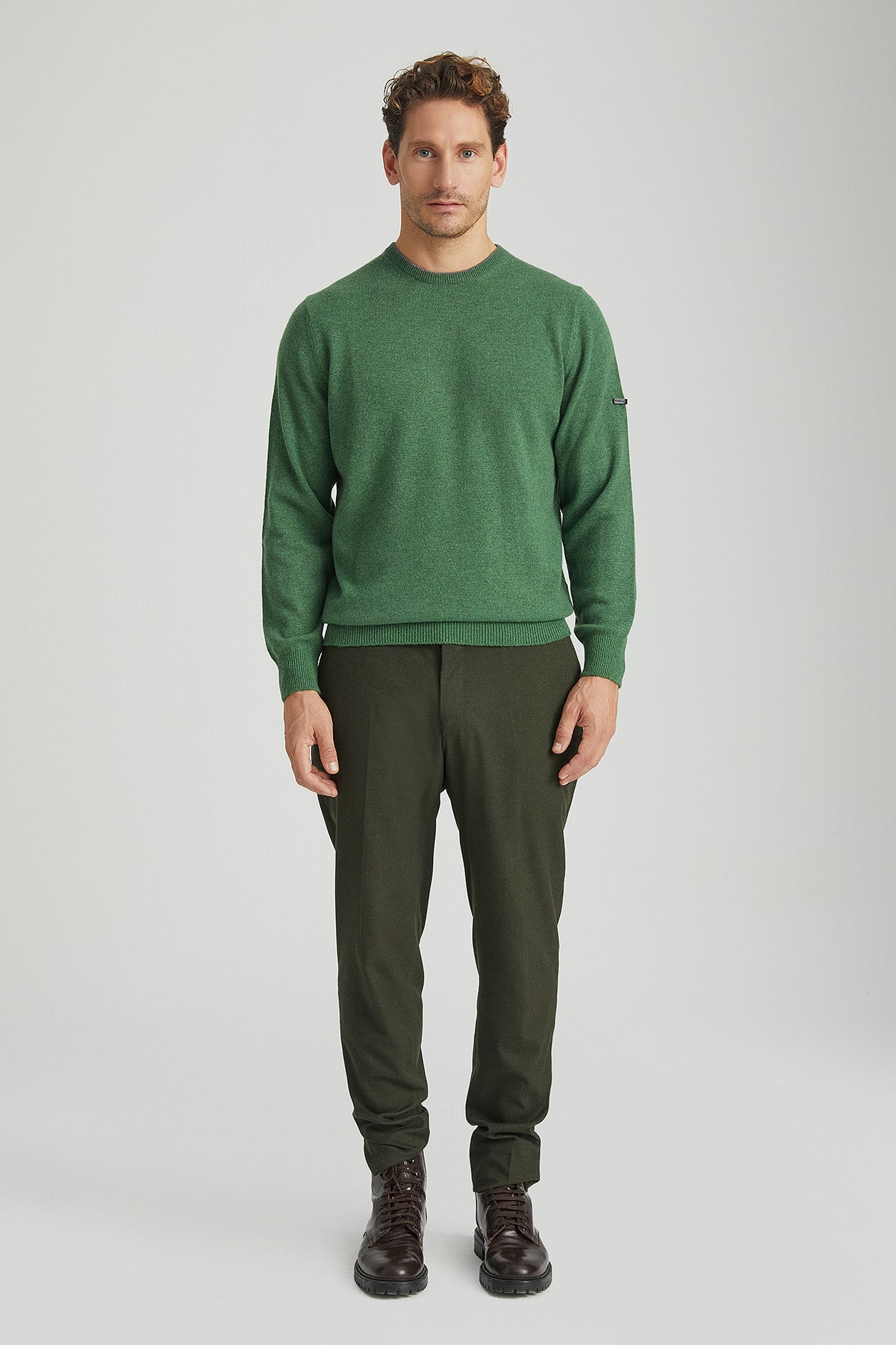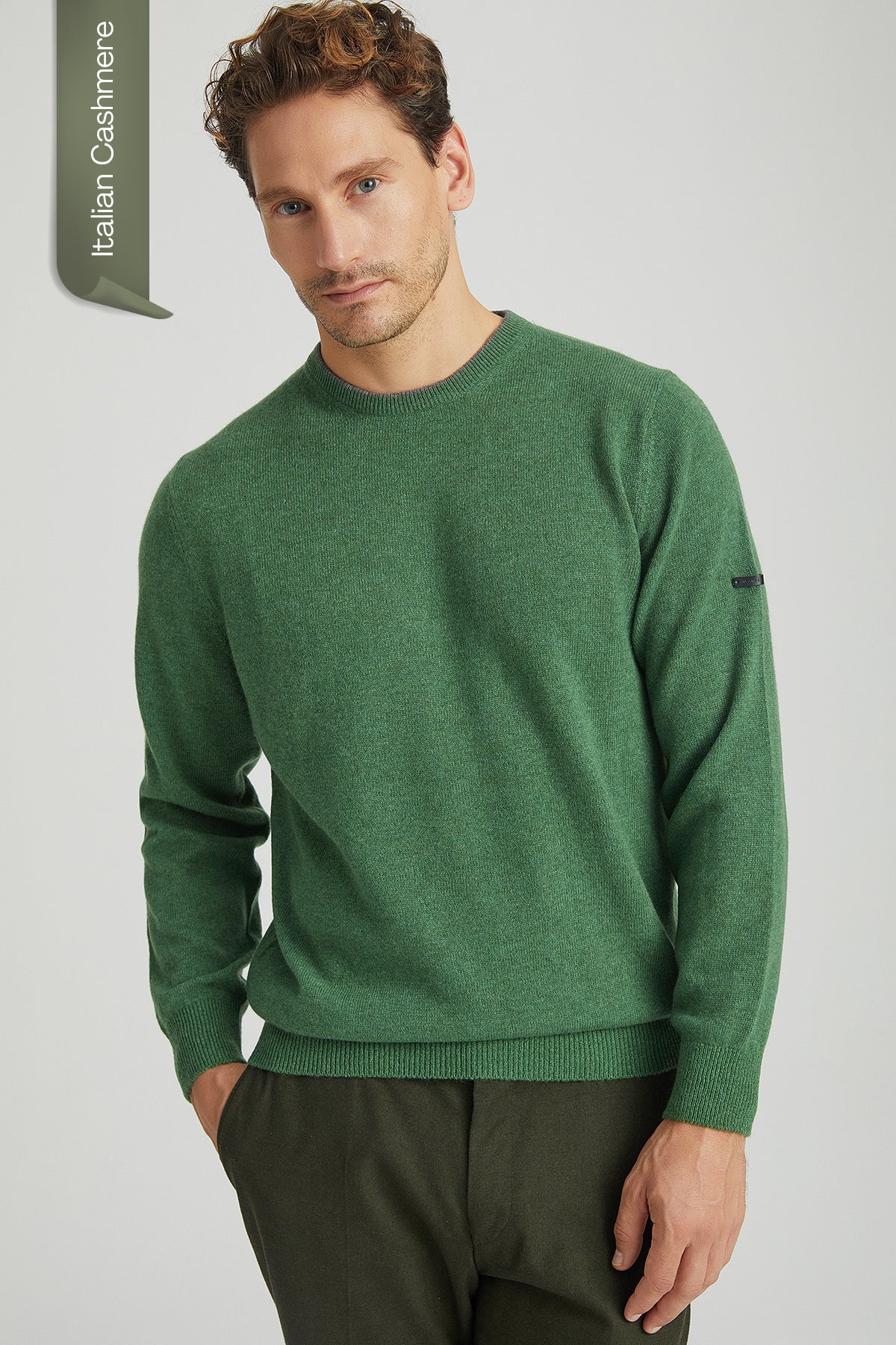 Yeşil İtalyan Saf Kaşmir Franco Bisiklet Yaka Erkek Kazak