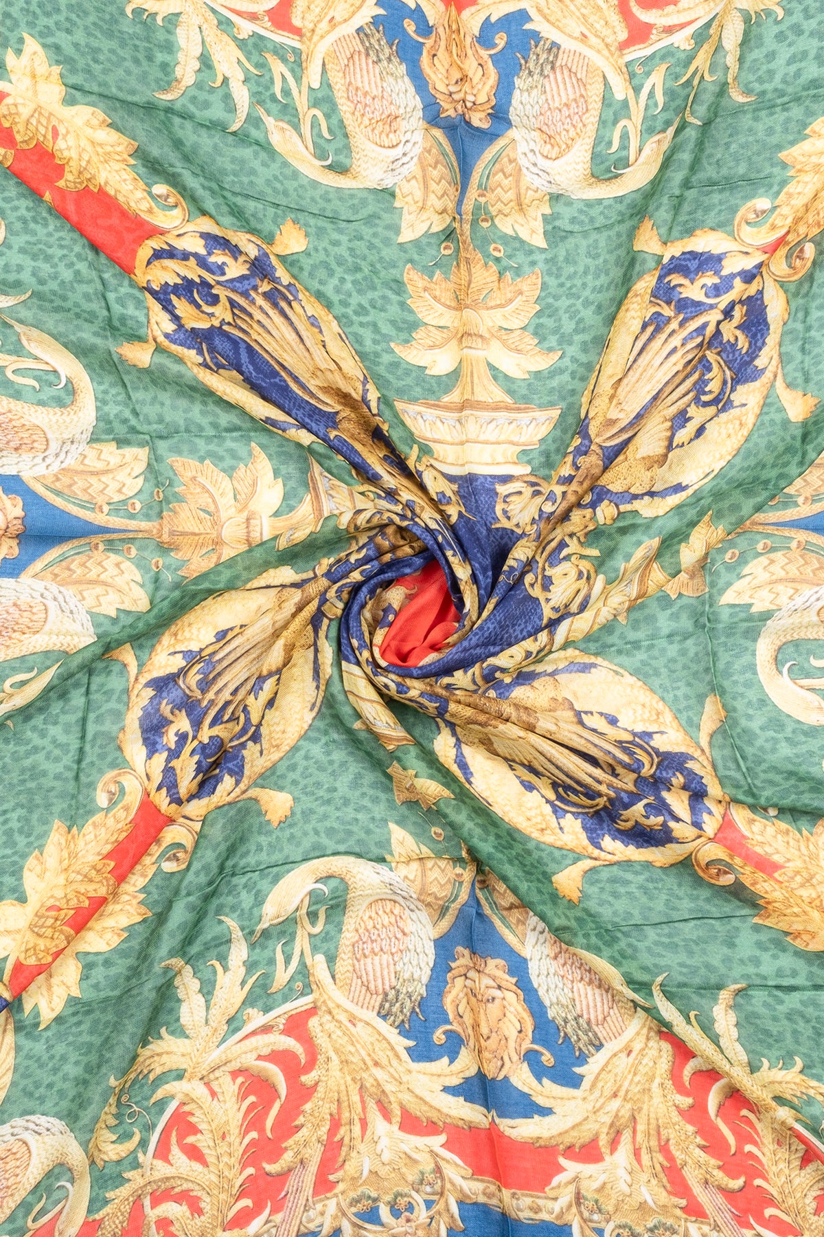 Yeşil Jas Desenli Kare Şal 140x140 cm