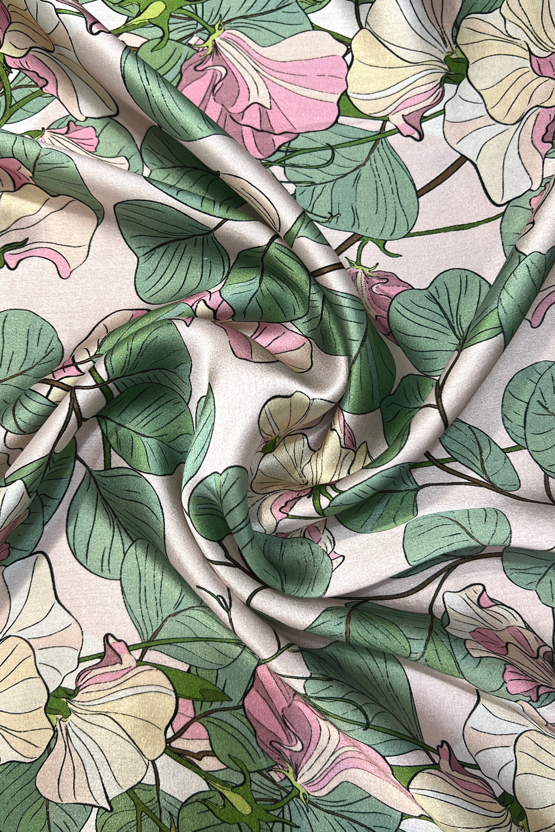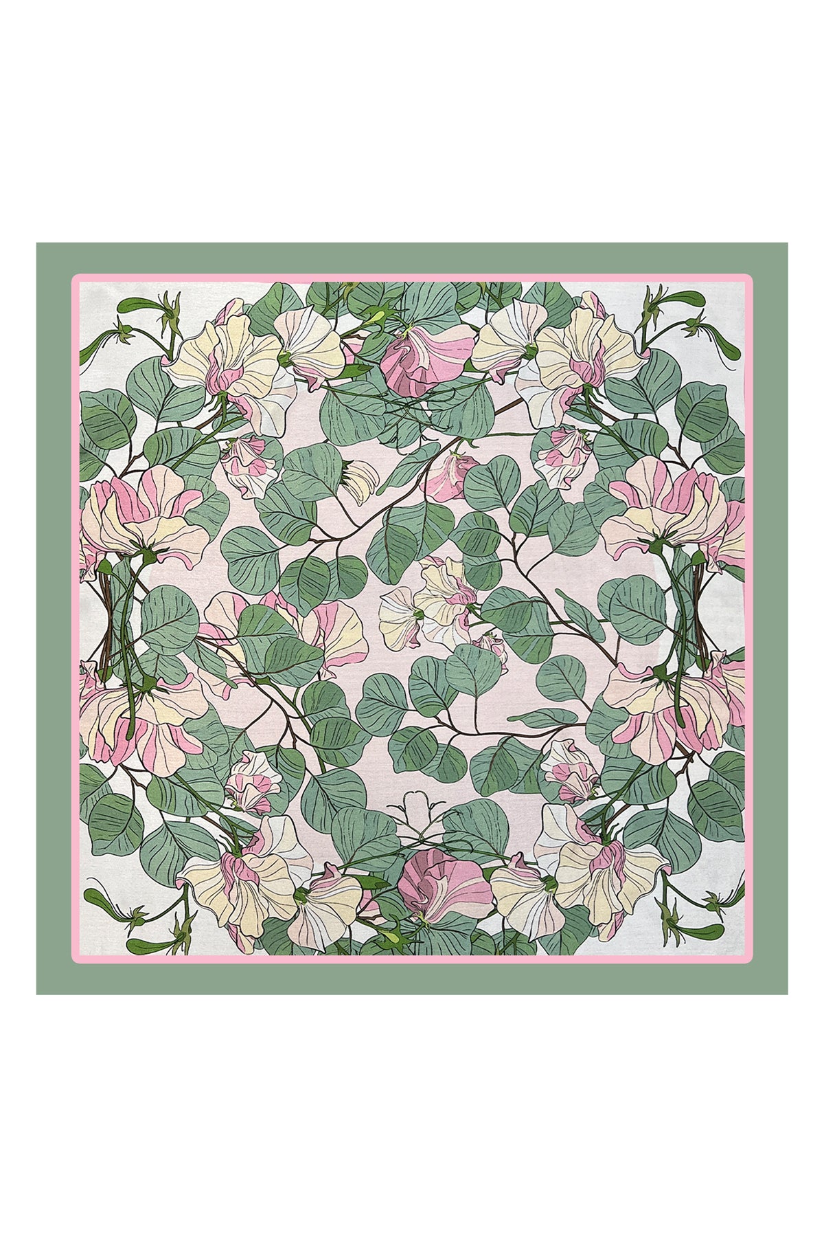 Yeşil Laila Saf İpek Roma Küçük Eşarp, doğanın yemyeşil bahçelerinden ilham alınarak tasarlanmıştır. Nazik pembe ve beyaz çiçeklerin zarif yeşil yapraklarla kusursuz bir uyum içinde dans ettiği bu eşarp, sofistike bir tarz sunar. İpeğin doğal parlaklığı, çiçek ve yaprak motiflerini daha da canlı hale getirir, böylece her kullanımda taze bir bahar sabahının ferahlığını hissettirir.