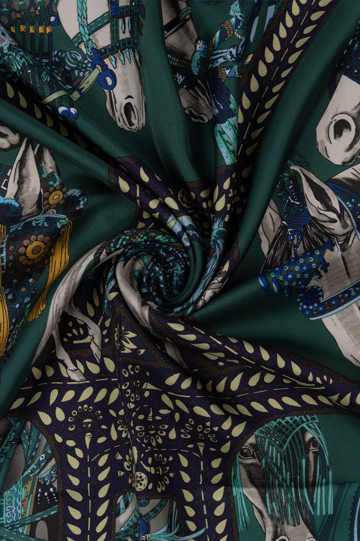 Yeşil Lara Saf İpek Roma Çift Taraflı Eşarp 90x90 cm