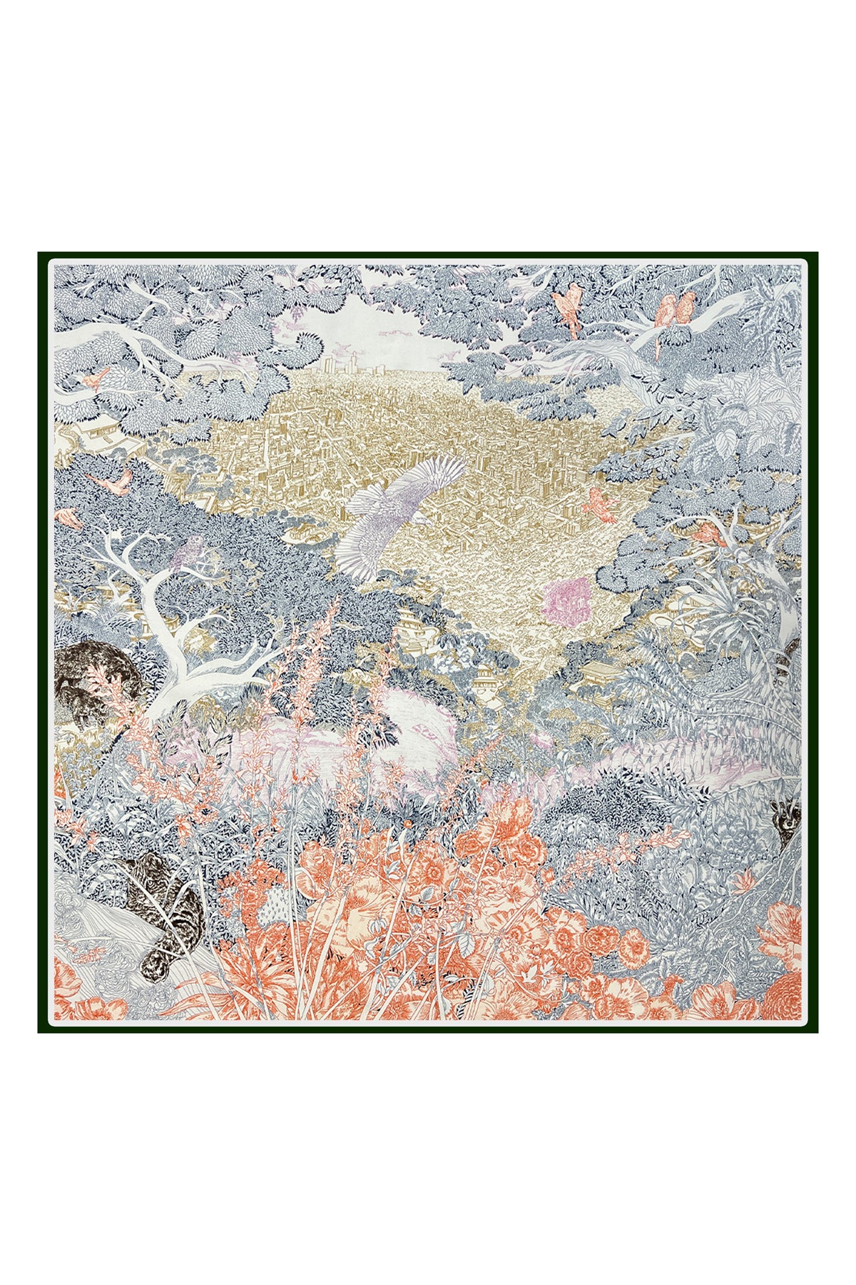 Yeşil Lena Saf İpek Roma Çift Taraflı Eşarp 70x70