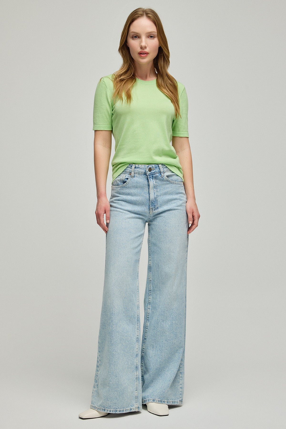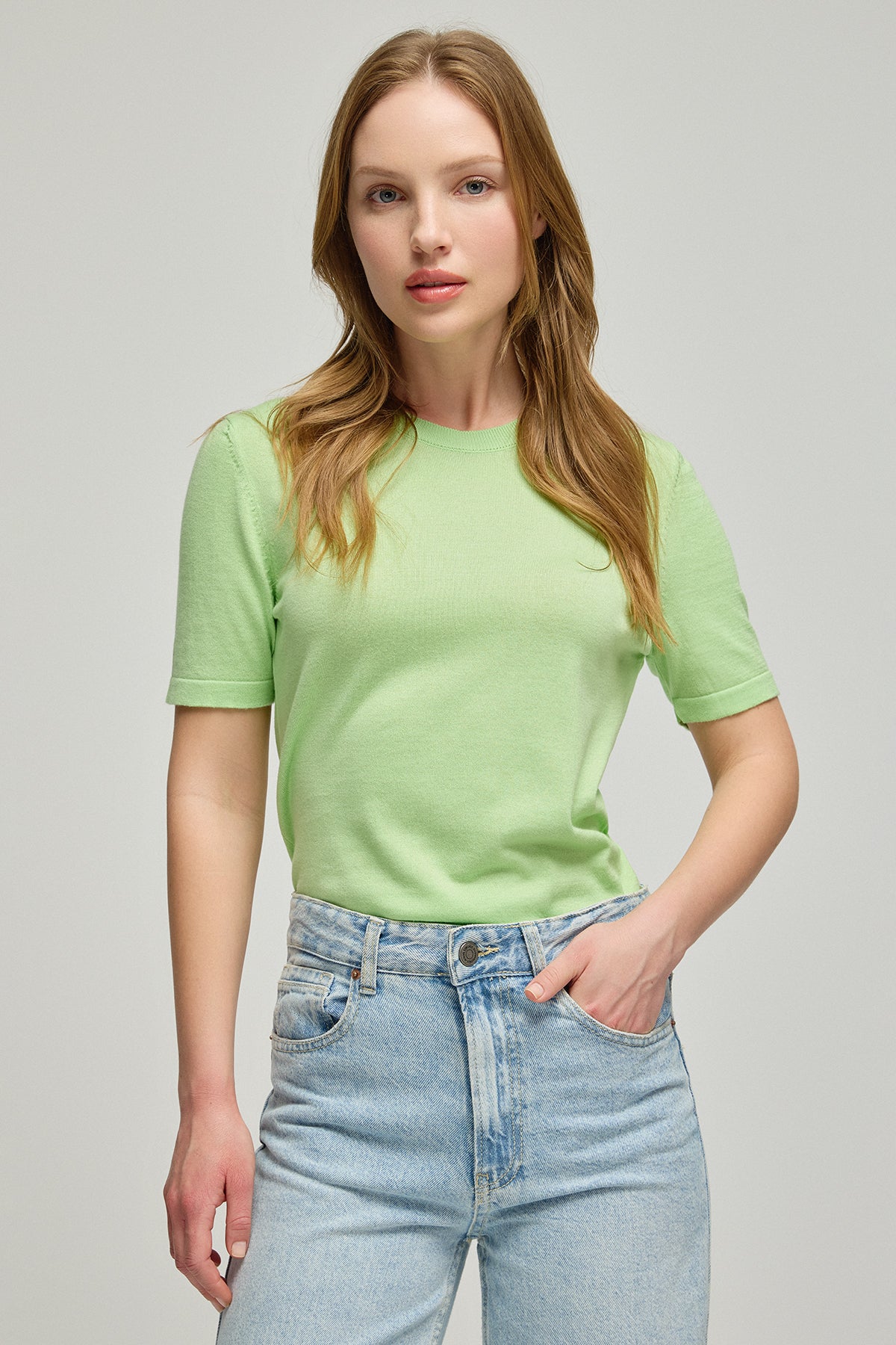 Yeşil Pamuk Modal Juno Yuvarlak Yaka Kısa Kollu Triko