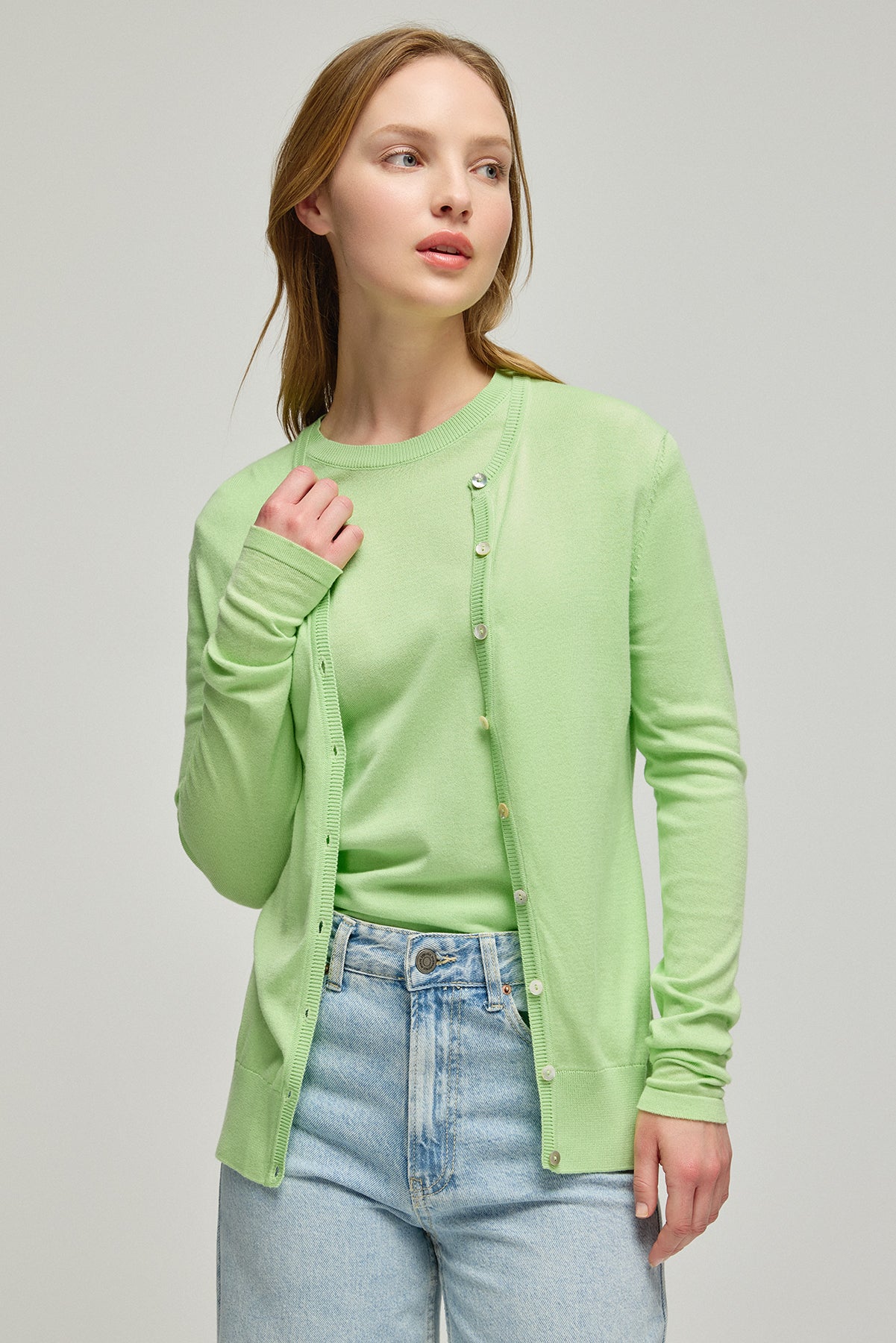 Yeşil Pamuk Modal Juno Yuvarlak Yaka Uzun Kollu Hırka