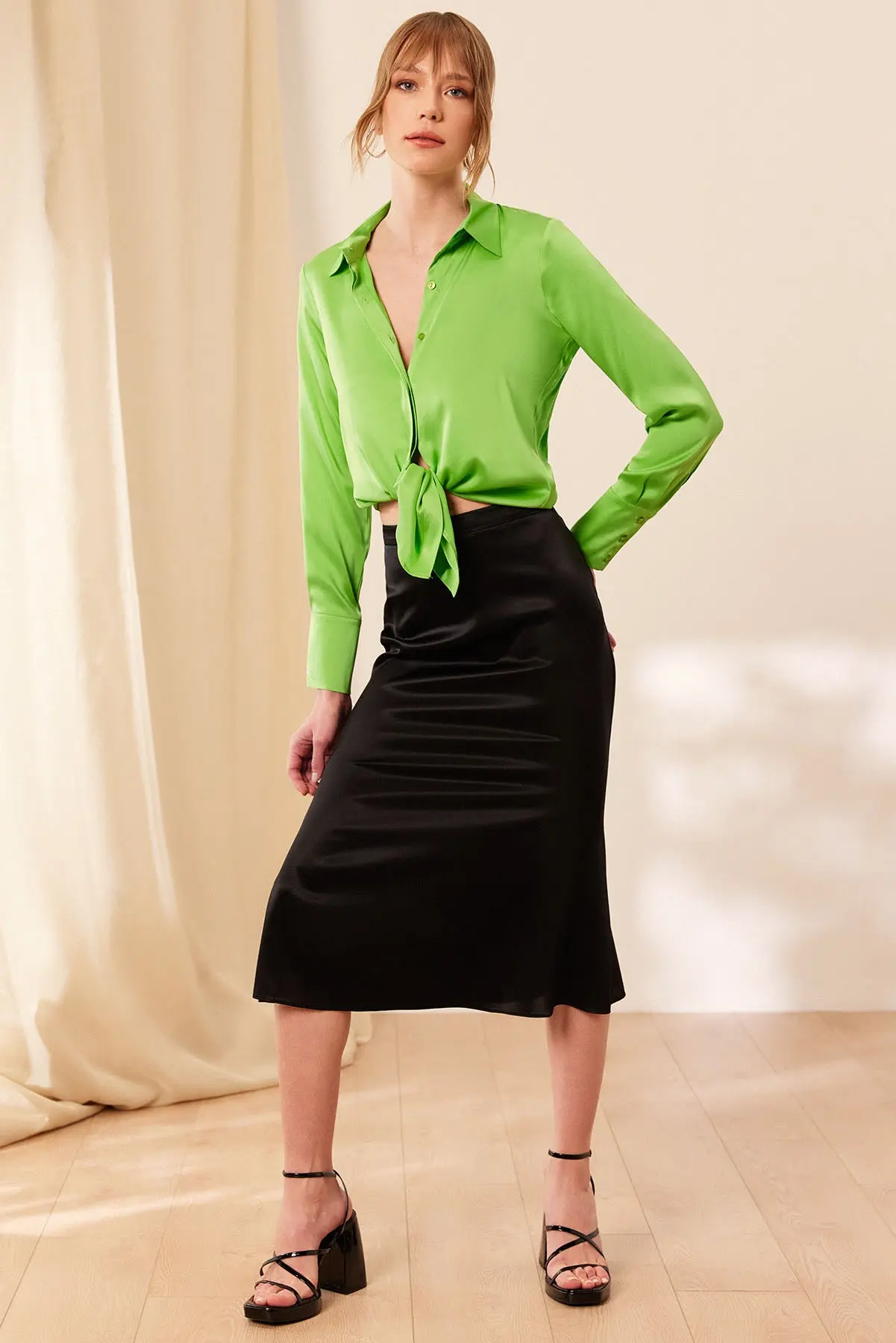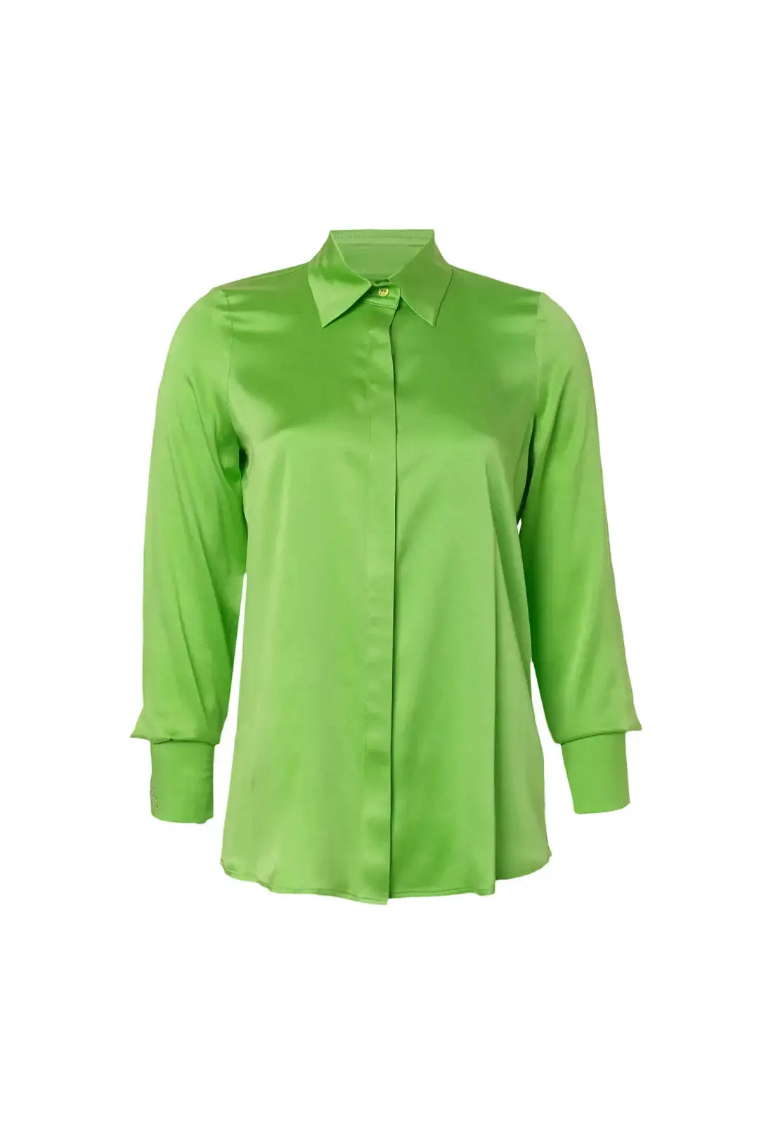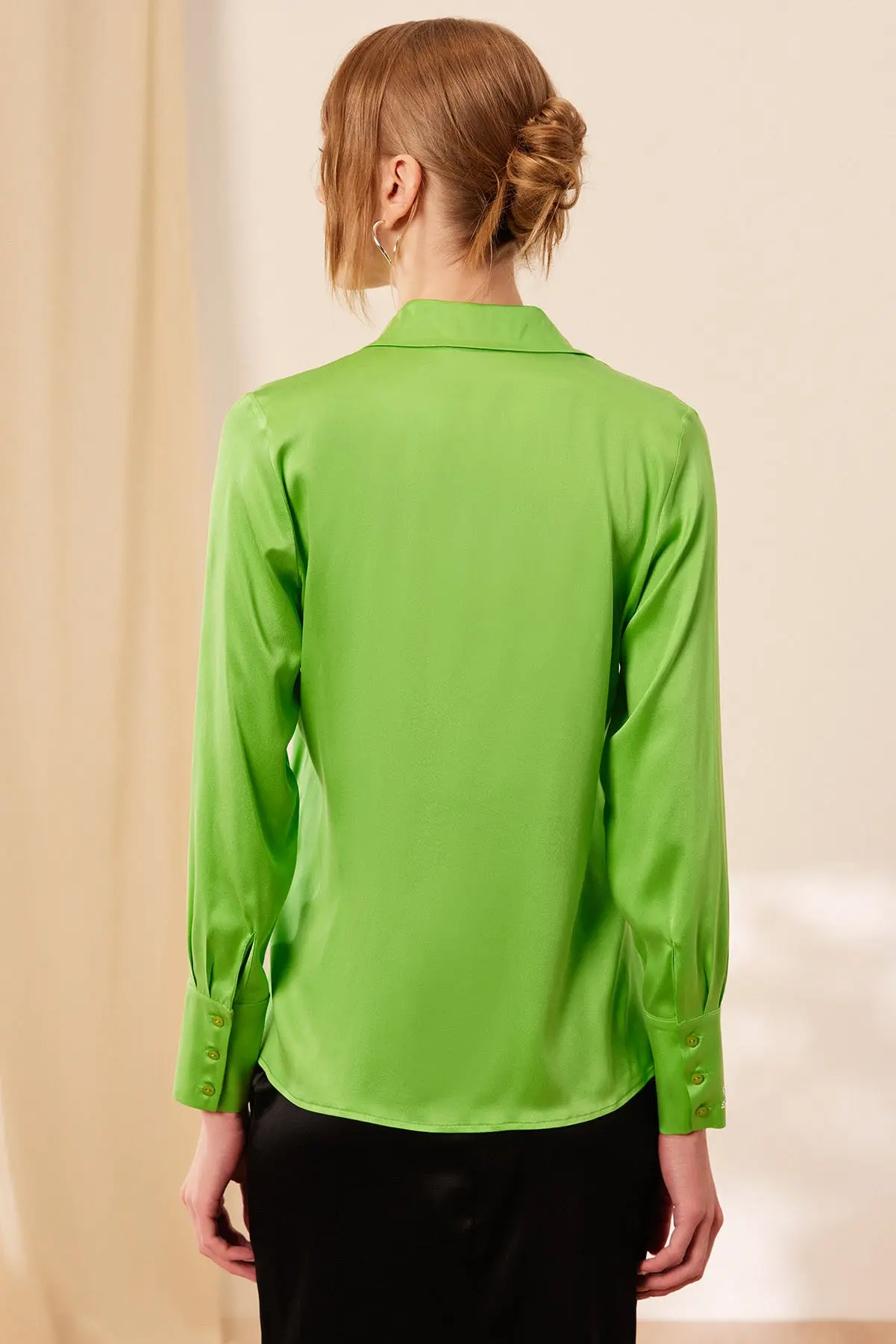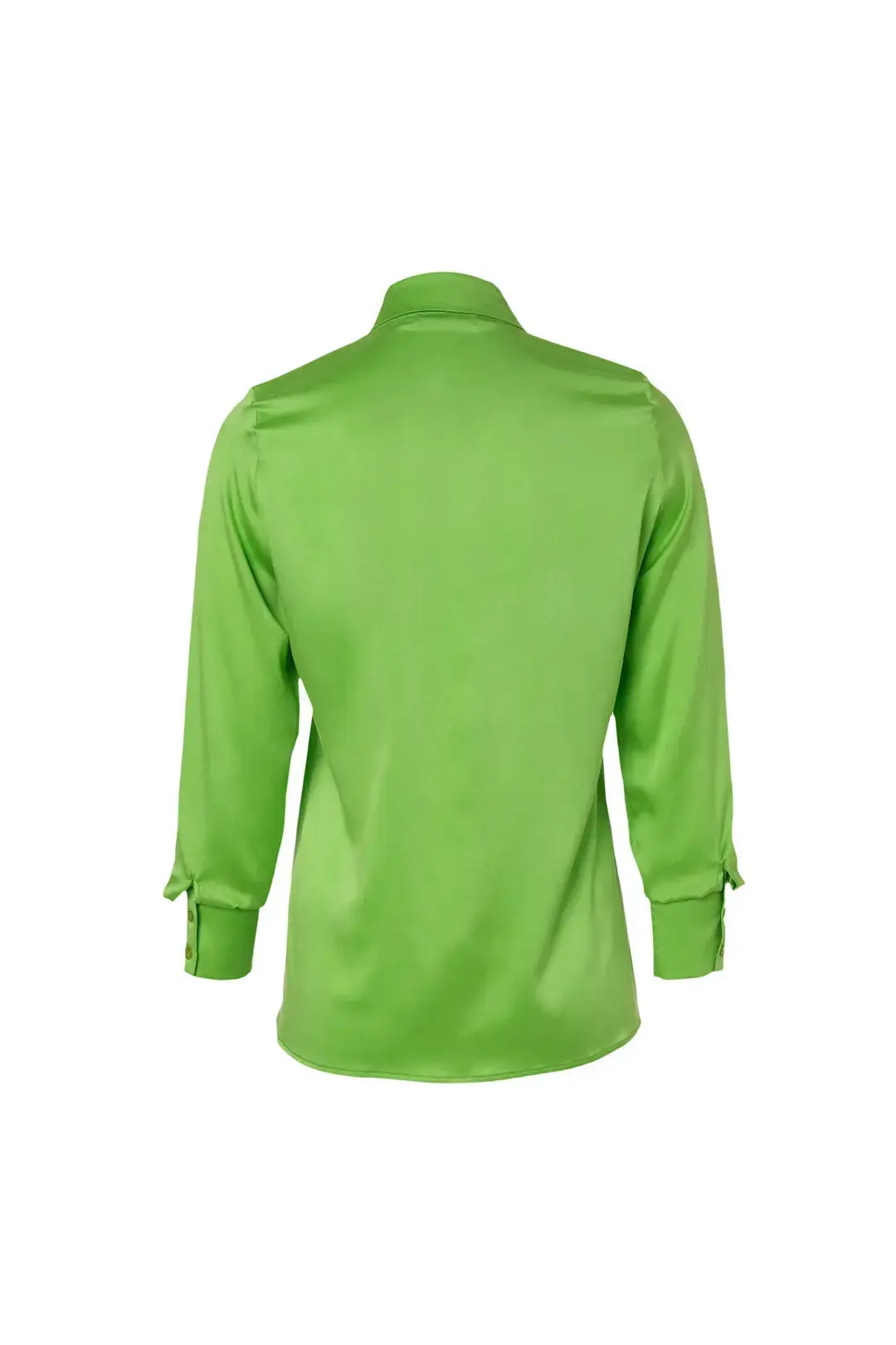Yeşil Saf İpek Audrey Uzun Kollu Gömlek