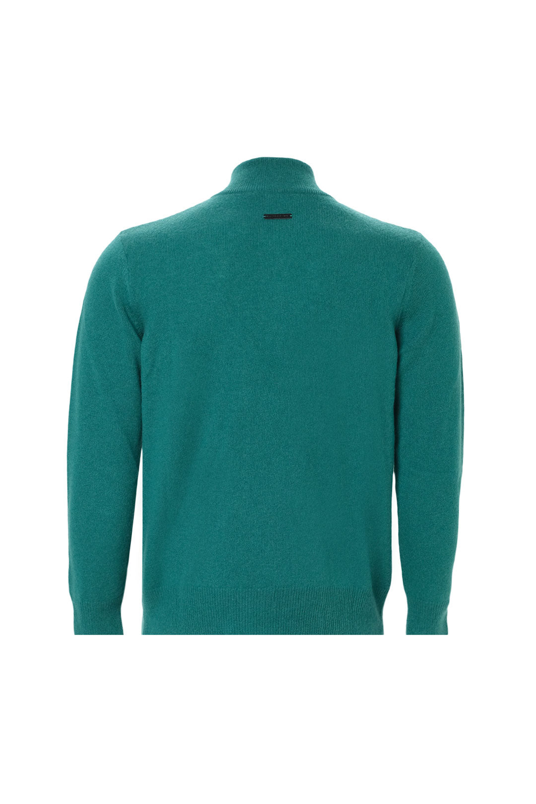 Yeşil Saf Kaşmir Fermuarlı Yarım Balıkçı Yaka Uzun Kollu Erkek Kazak