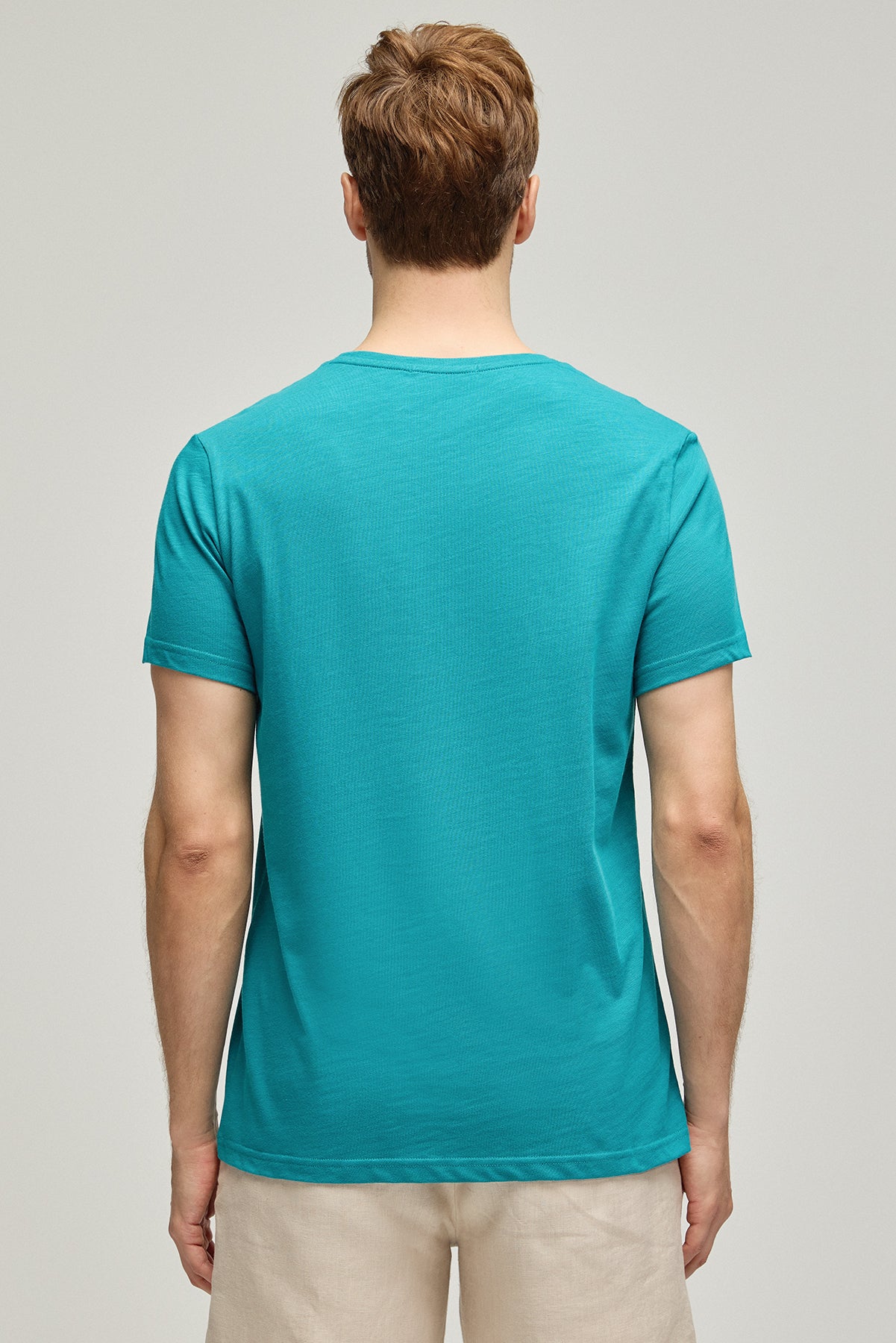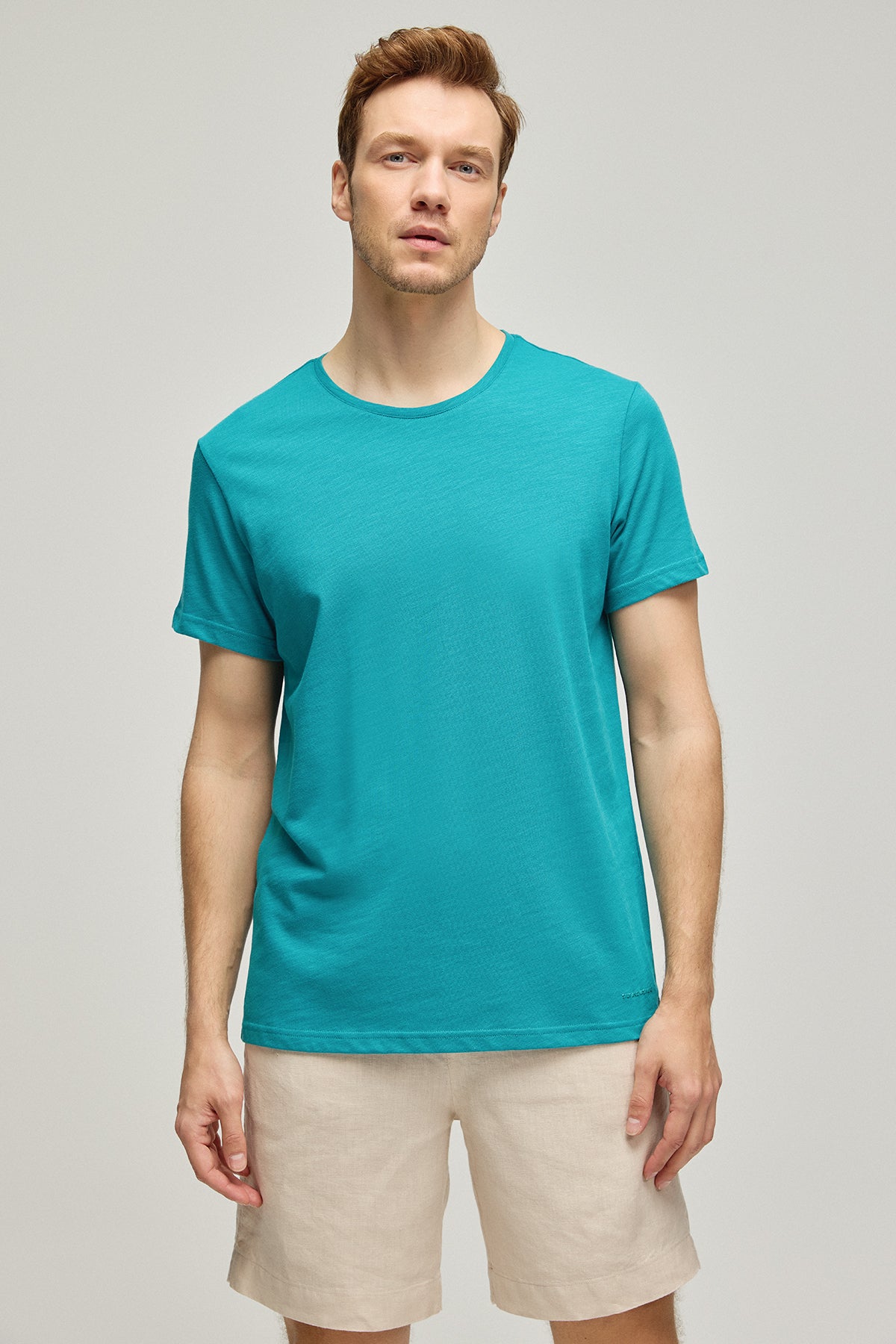 Yeşil Saf Pamuk Marc Yuvarlak Yaka Erkek Basic Tişört